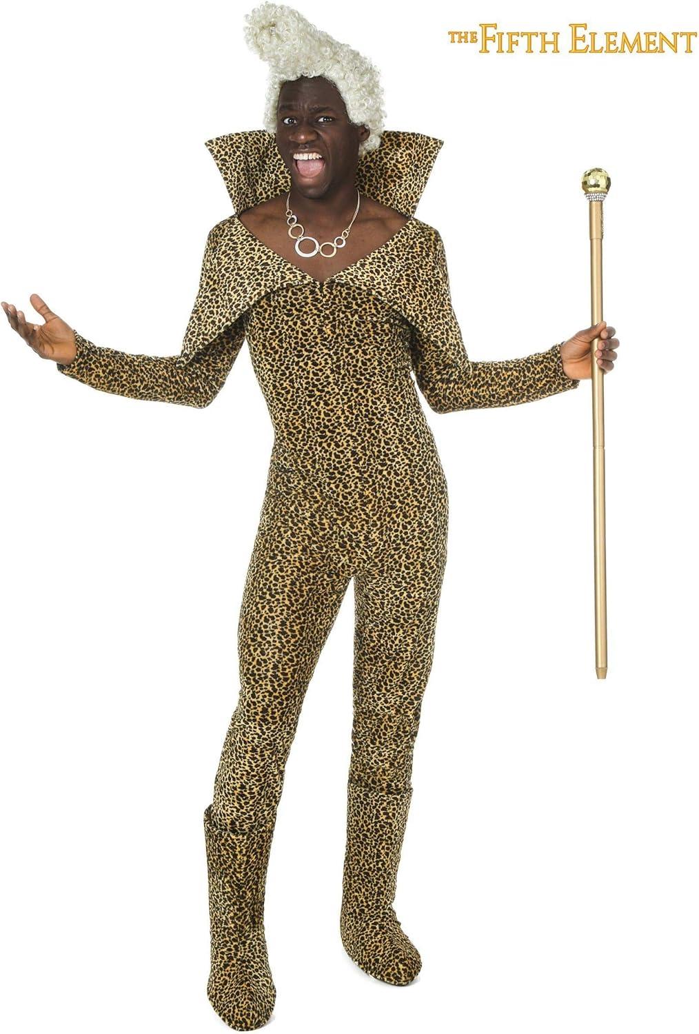 The Fun Costumes Adult Fifth Element Ruby Rhod Costume Fifth Element fans can cosplay as their favorite character from the movie with this Fifth Element Ruby Rhod Costume for adults! This iconic outfit recreates the look worn by the character in the film. The costume includes a faux fur jumpsuit with a leopard pattern. The suit features a padded oversized collar and fits with a front zipper. Matching boot covers fit with elastic under the foot and a wig completes the outfit. The synthetic hair wig features curly white strands with pompadour styling. It’s all about ratings baby, and you gotta stay hot, hot, HOT! Product Details: 100% polyester Faux fur jumpsuit has front zipper Padded oversized collar Faux fur boot covers have elastic band to hold under shoe Synthetic hair on mesh wig cap with elastic edges Size Chart: S: Chest=32″; Sleeve Length=24″; Waist=30″; Torso=29″; Jumpsuit Length=58 M: Chest=36″; Sleeve Length=24 1/2″; Waist=34″; Torso=30″; Jumpsuit Length=59″ L: Chest=40″; Sleeve Length=25″; Waist=36″; Torso=31″; Jumpsuit Length=60″ XL: Chest=44″; Sleeve Length=25″; Waist=40″; Torso=32″; Jumpsuit Length=61″ About Us: Fun Costumes are exclusively made by us and begin with passion, teamwork, and industry expertise decades in the making. Our products are proof that with the right people even a simple idea can grow into something incredible. We started in a small garage in Minnesota, providing costumes to our local community, and now we're creating costumes for people all around the world. – Jumpsuit – Wig – Pair of Boot Covers