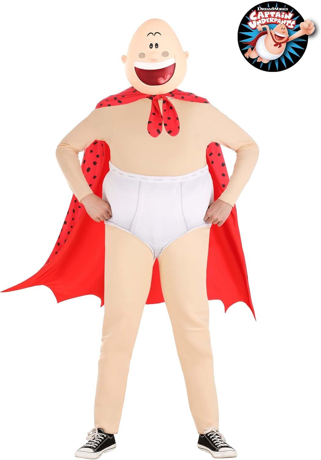 The Fun Costumes Captain Underpants Adult Costume If you've never tried a superhero costume for Halloween but would like to give it a shot, let's turn you into the superhero who only wears his undies with this officially licensed Captain Underpants costume! This adult outfit features a flesh-toned bodysuit with attached white underwear briefs. The suit fits with a hook and loop fastener at the center back. The red cape has black specks and secures with same-fabric ties at the neck. The molded plastic mask captures the smiling face of Captain Underpants and fits with an elastic band that goes around the back of the head. Foam pads inside the mask position it to your face and it has mesh-covered eye openings for vision. Product Details: Jumpsuit has hook & loop fastener at center back Jumpsuit is styled to look like a person wearing nothing but underpants Black-spotted red cape has same-fabric ties at neck Molded plastic mask has elastic band around back of head Mask has mesh-covered eye openings, will restrict vision Mask has foam padding inside for comfort & positioning Dreamworks officially licensed Size Chart: S: Chest=38″; Sleeve Length=25 1/2″; Torso=30″; Jumpsuit Length=58 1/2″ M: Chest=40″; Sleeve Length=26″; Torso=31″; Jumpsuit Length=59″ L: Chest=44″; Sleeve Length=26 1/2″; Torso=32″; Jumpsuit Length=60″ XL: Chest=48″; Sleeve Length=26 1/2″; Torso=33″; Jumpsuit Length=61″ About Us: Fun Costumes are exclusively made by us and begin with passion, teamwork, and industry expertise decades in the making. Our products are proof that with the right people even a simple idea can grow into something incredible. We started in a small garage in Minnesota, providing costumes to our local community, and now we're creating costumes for people all around the world. – Jumpsuit – Cape – Mask