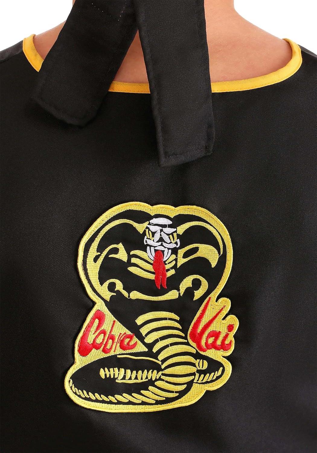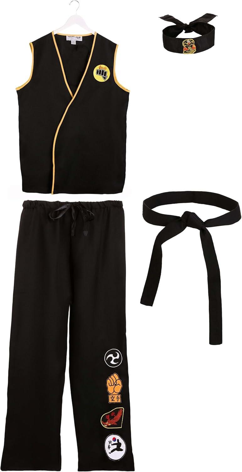Adult Cobra Kai Costume Mens, Official Karate Kid Sleeveless Black Gi Uniform Halloween Outfit Medium Bundle