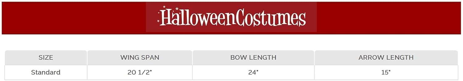 The Fun Costumes Cupid Wings and Bow Kit Want to become Cupid in a moment? This wing and bow set have you covered! The plush red wings slip over your shoulder with gold straps. The matching gold bow and arrow are a delightful way to add a playful touch to your Valentine's Day outfit. The bow features a flexible plastic core and fiberfill covered by metallic fabric and it has an elastic bowstring. The arrow features fabric over a plastic rod and a plush velvet heart as the arrowhead! Use this kit to complete a Cupid costume or top off your Valentine's Day costume and you'll be ready to spread the love. Product Details: 100% polyester velvet and metallic knit fabrics Velvet wings have foam layer inside Wings have elastic shoulder straps Bow is stuffed metallic knit with flexible plastic core & elastic bowstring Arrow is fabric-covered plastic rod with stuffed velvet heart as arrowhead Size Chart: One Size: Wing Span=20 1/2″; Bow Length=24″; Arrow Length=15″ About Us: Fun Costumes are exclusively made by us and begin with passion, teamwork, and industry expertise decades in the making. Our products are proof that with the right people even a simple idea can grow into something incredible. We started in a small garage in Minnesota, providing costumes to our local community, and now we're creating costumes for people all around the world. – Wings – Bow – Arrow
