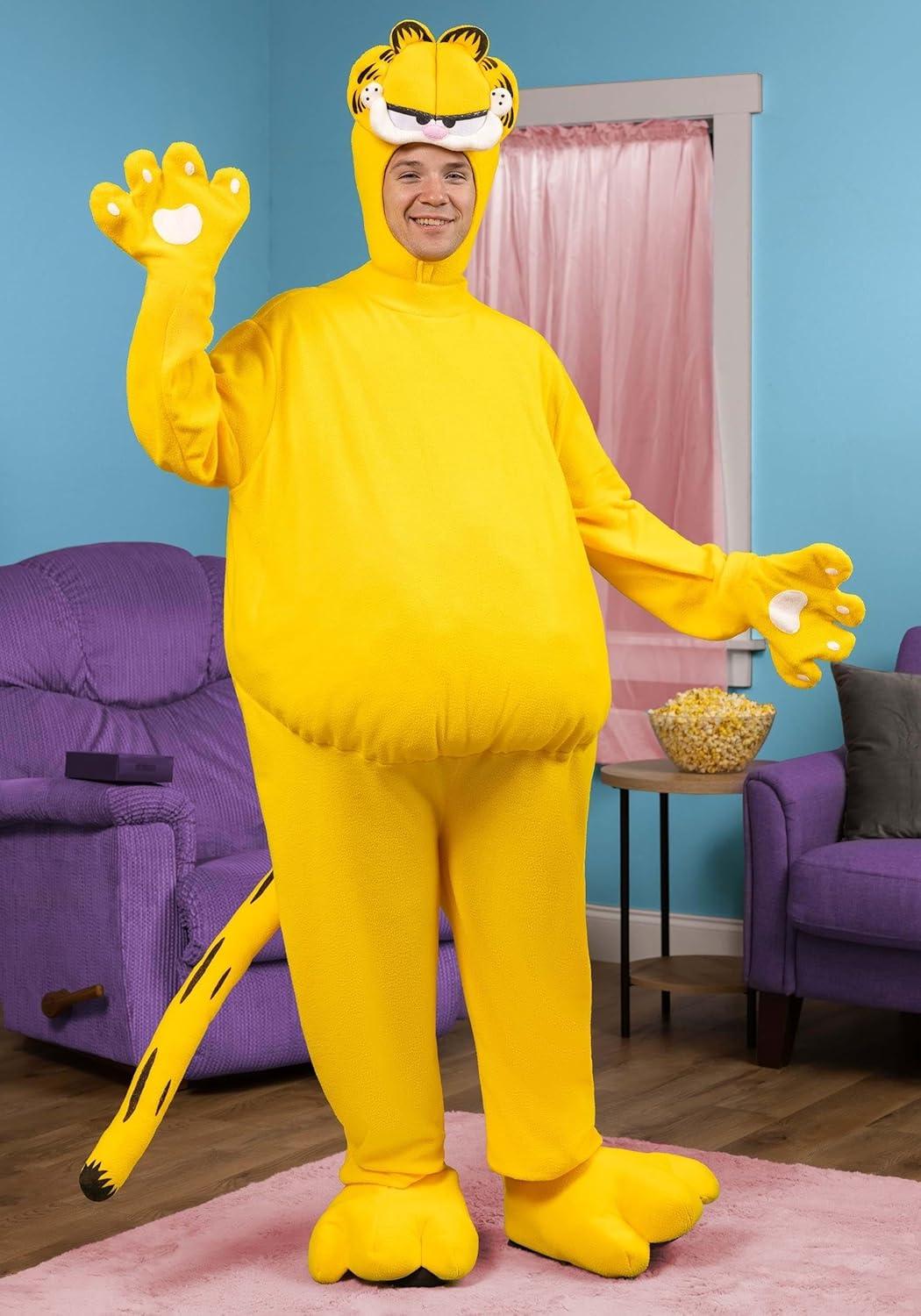 Adult Garfield Costume for Men, Cat Mascot Halloween Bodysuit, Classic Cartoon Cat Costume for Parties & Dressup