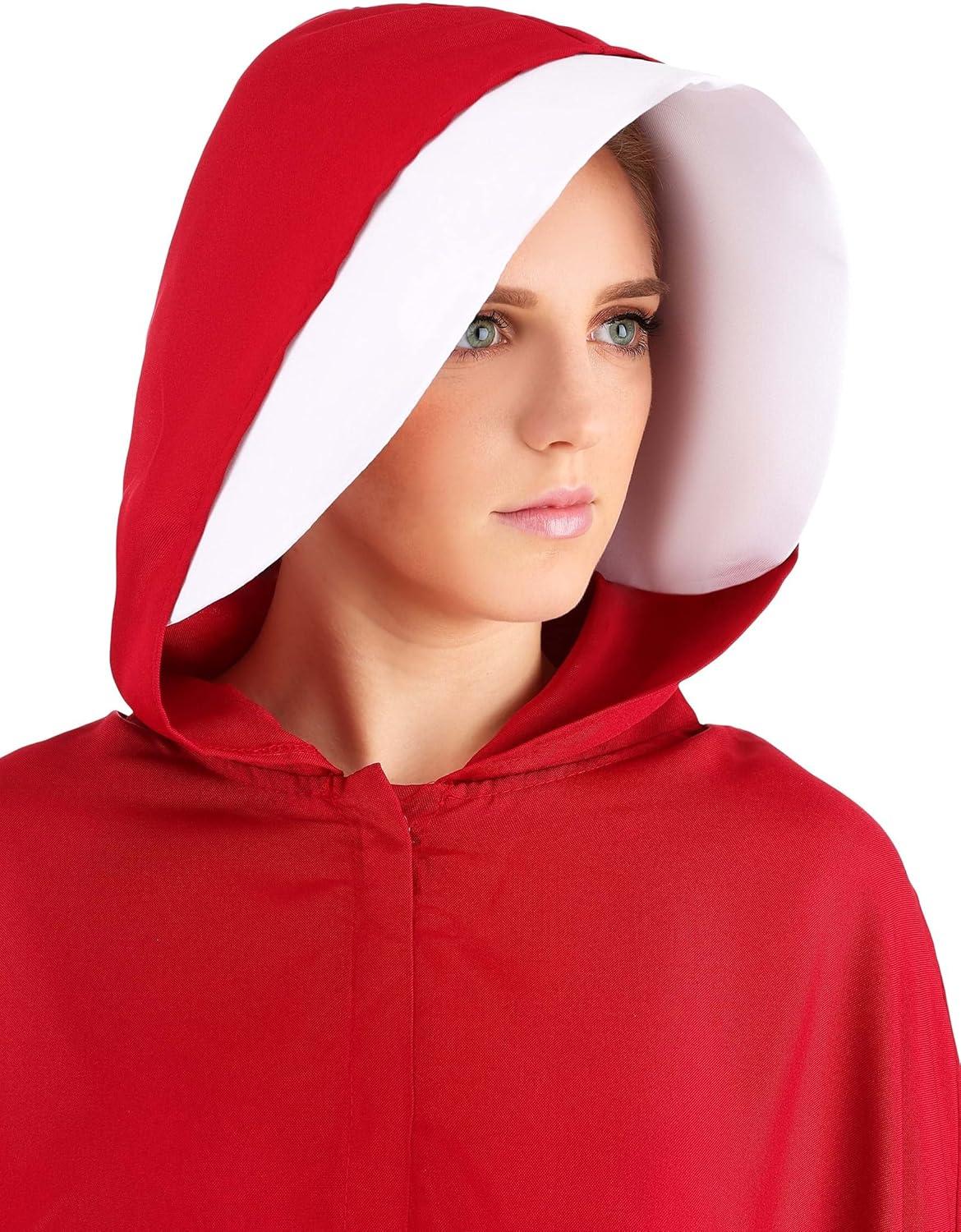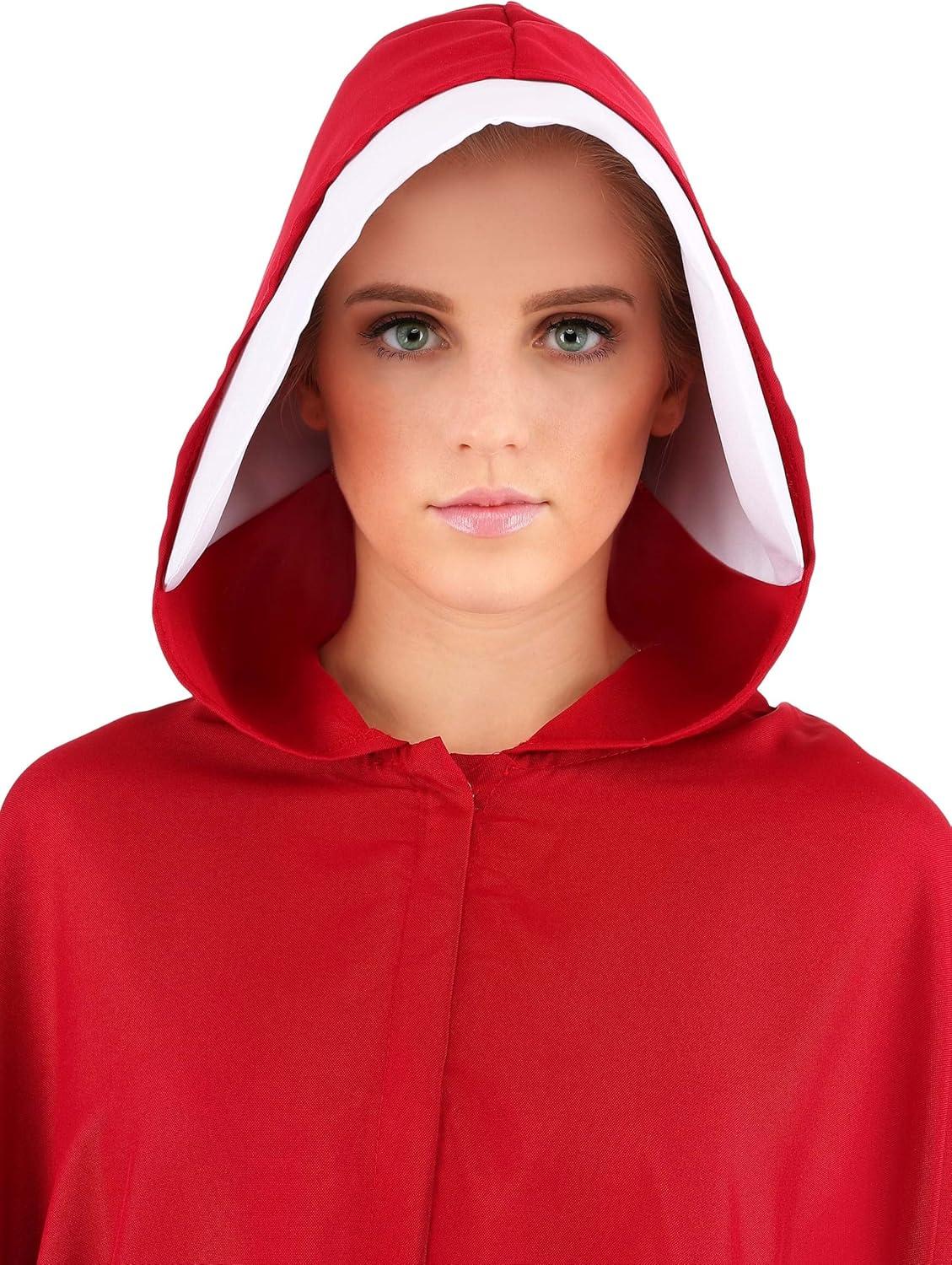 Adult Handmaid’s Tale Costume Womens, Hooded Red Cloak Robe Halloween Outfit(Red)