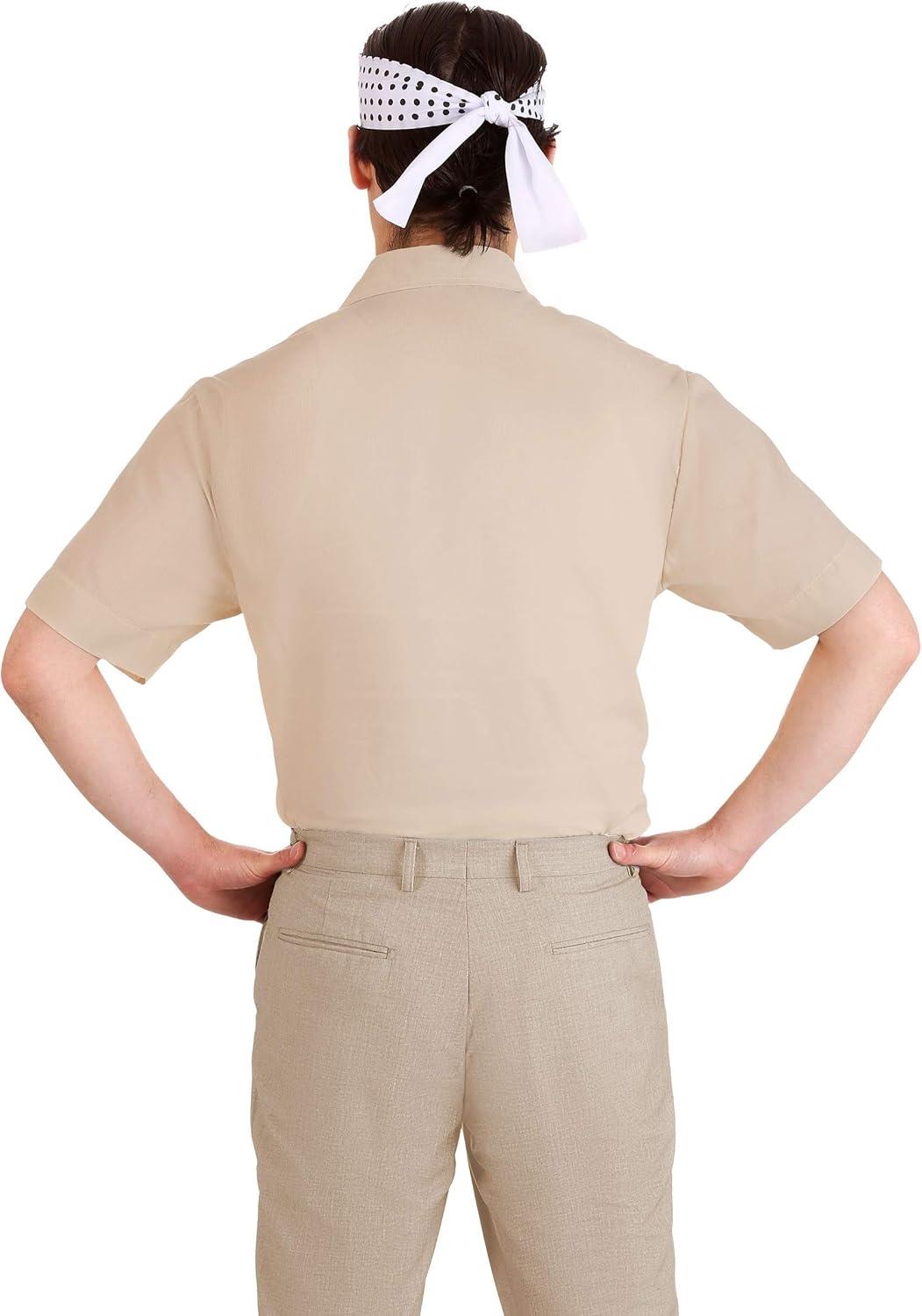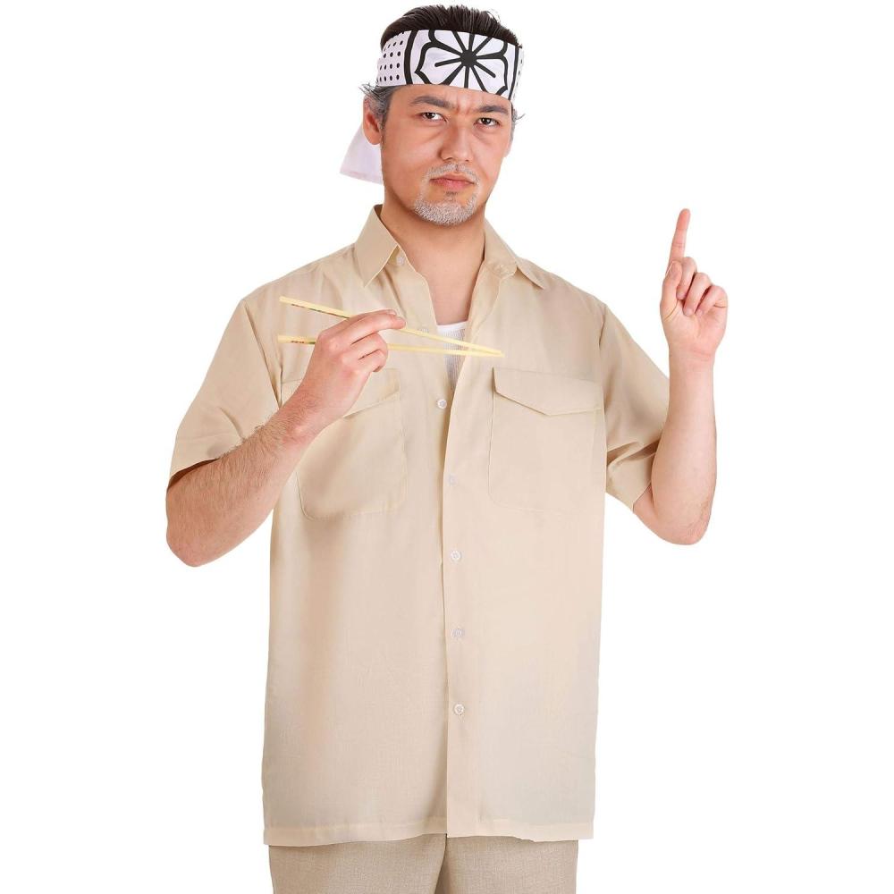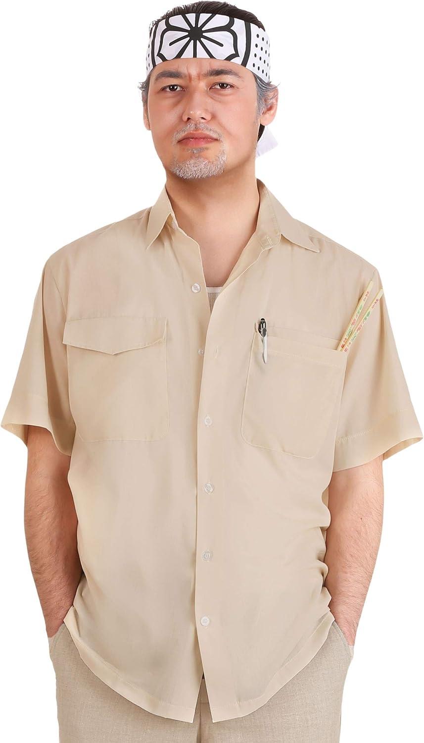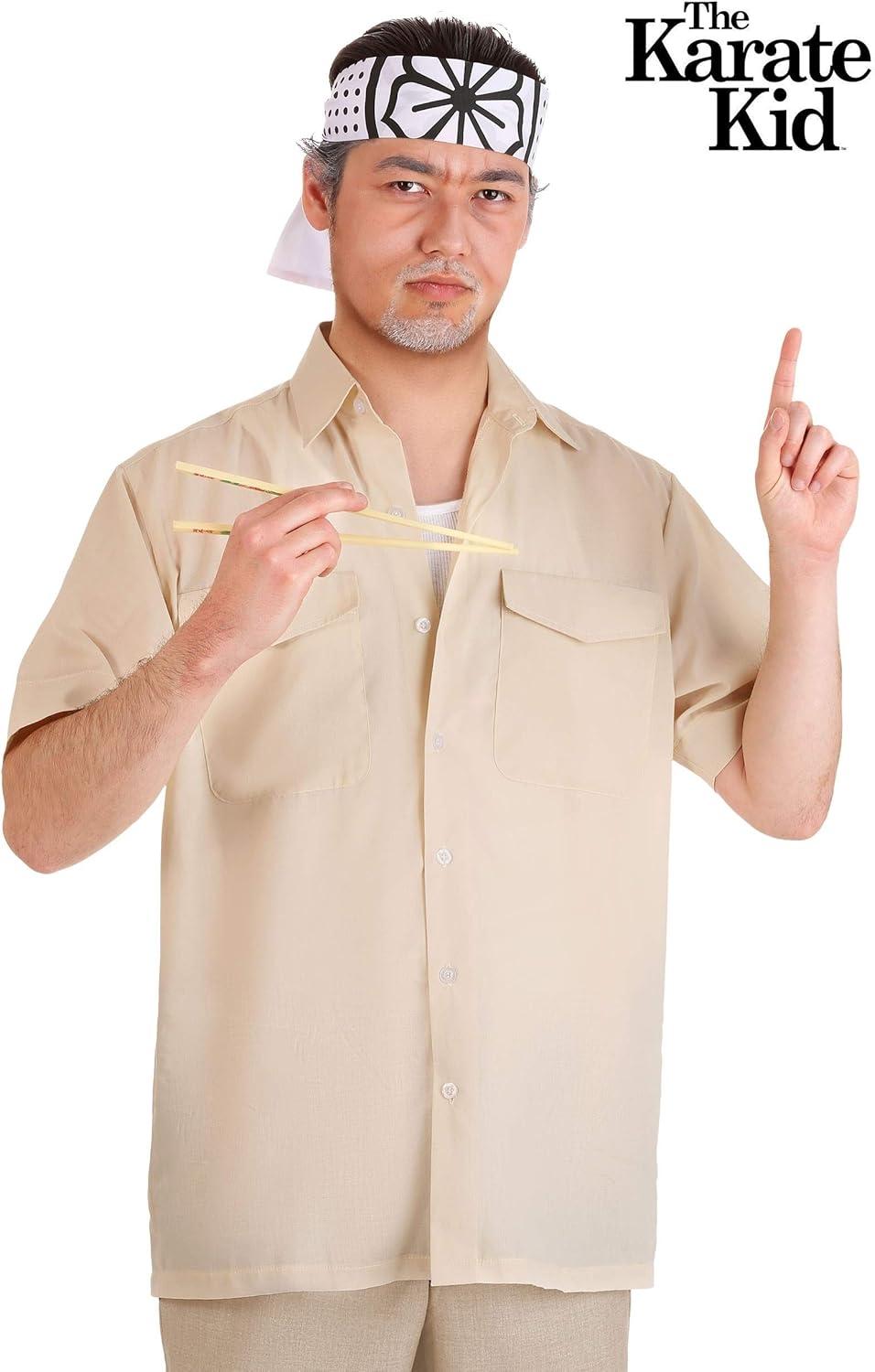 Adult Karate Kid Mr. Miyagi Costume Kit | Shirt, Headband, and Pair of Chopsticks | 80’s Movie Inspired Halloween Set