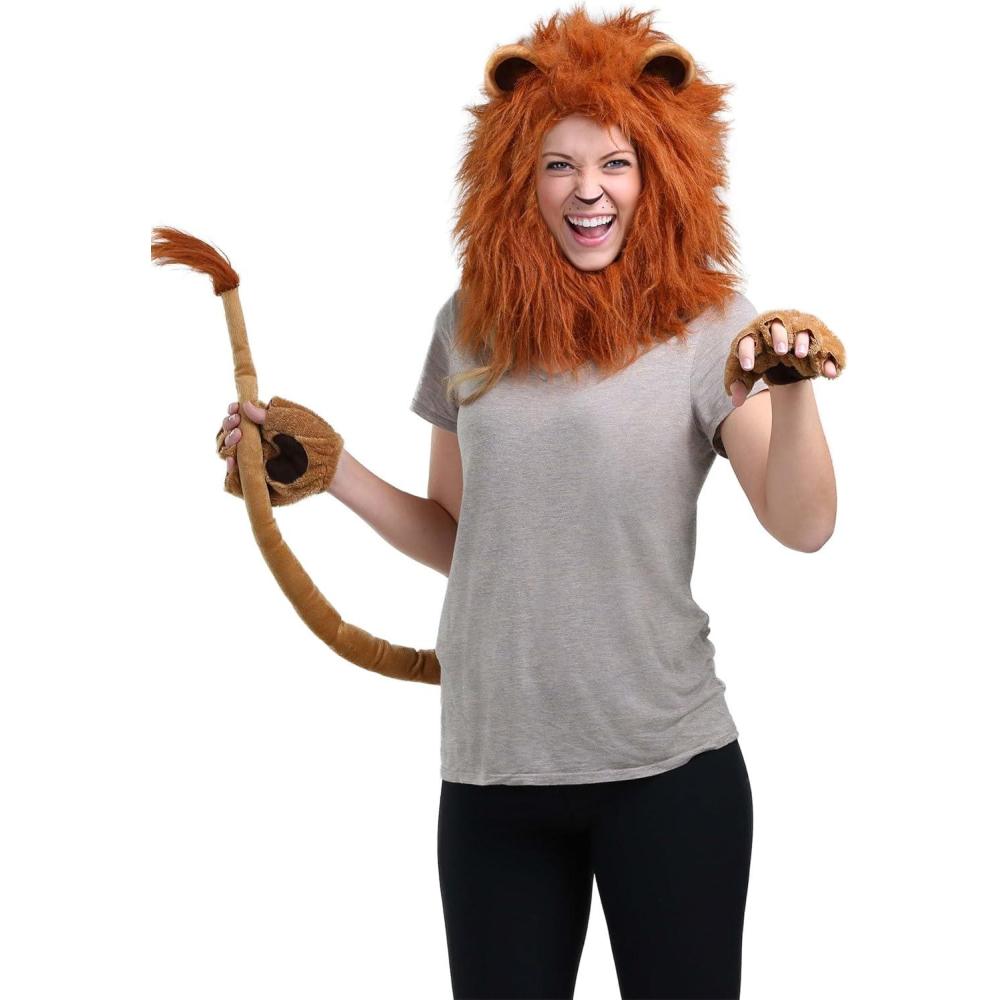 Adult Lion Mane Costume Deluxe Unisex Lion Accessories with Mane, Tail, Gloves for Halloween