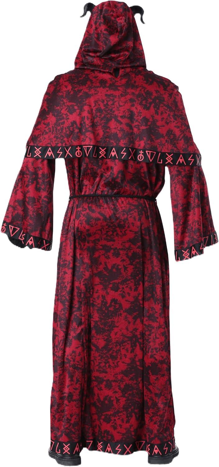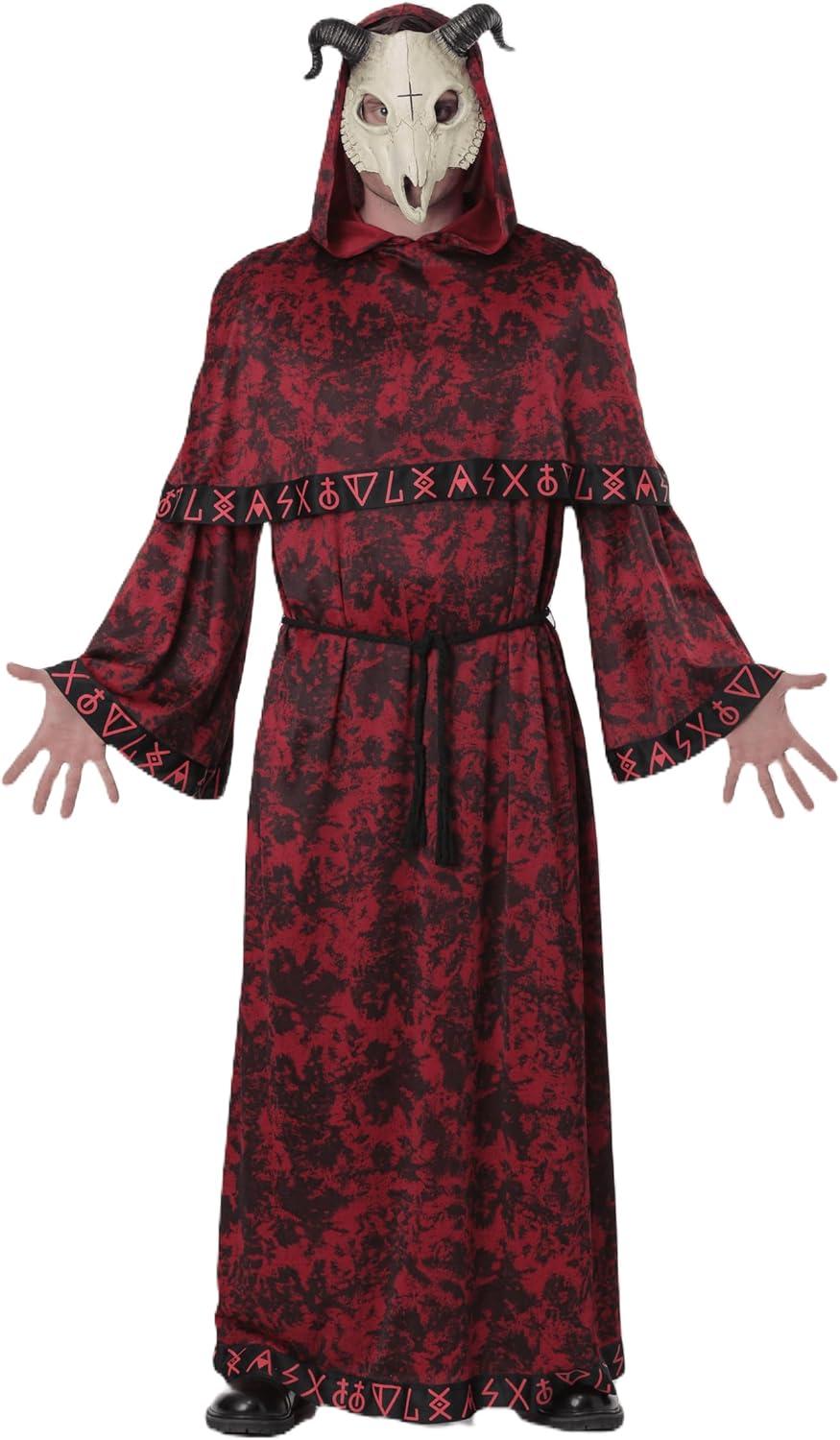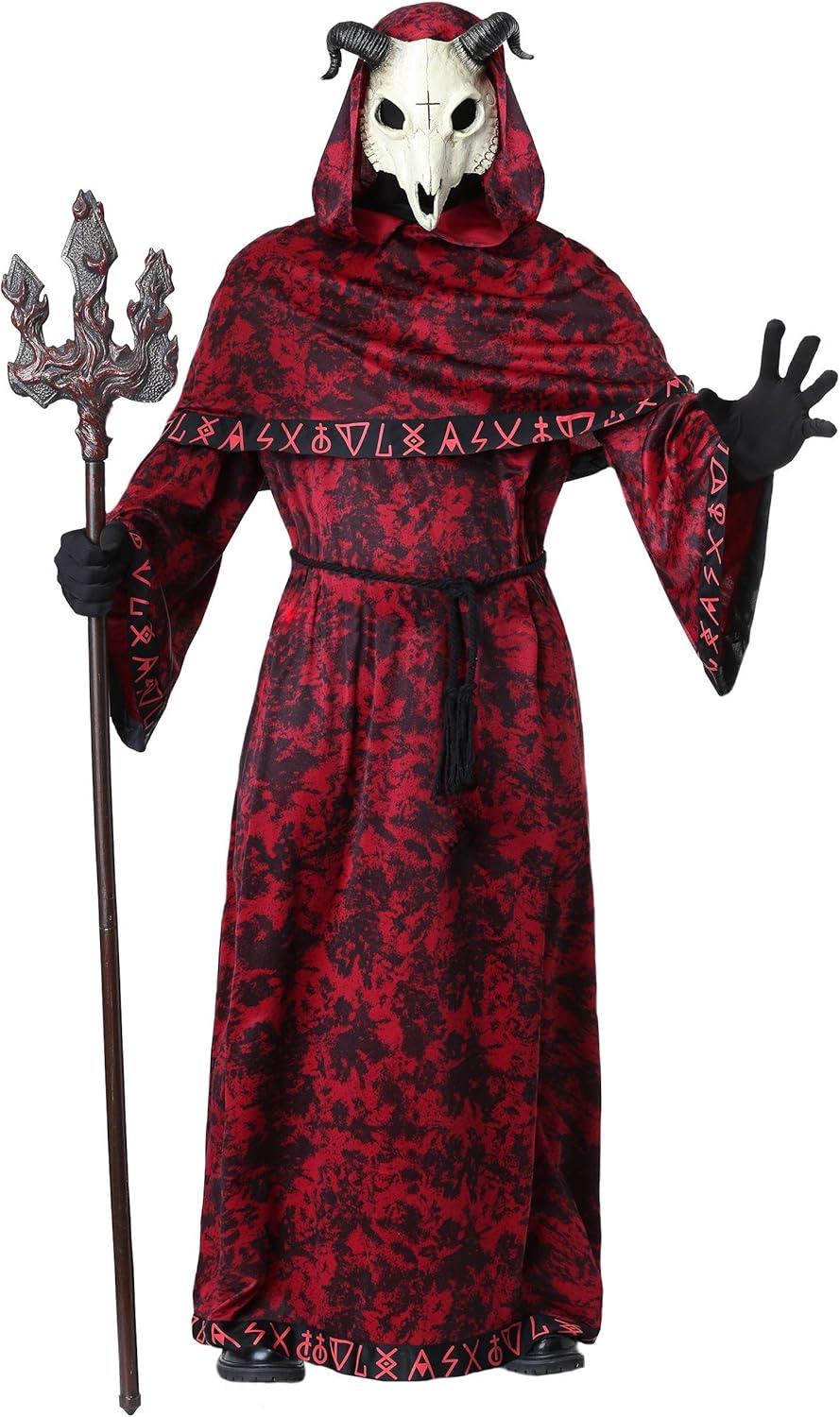 Adult Masked Evil Costume, Men’s Red and Black Robe, Satanic Panic Demonic Cult Leader Halloween Outfit(Bundle W/ Pitchfork)