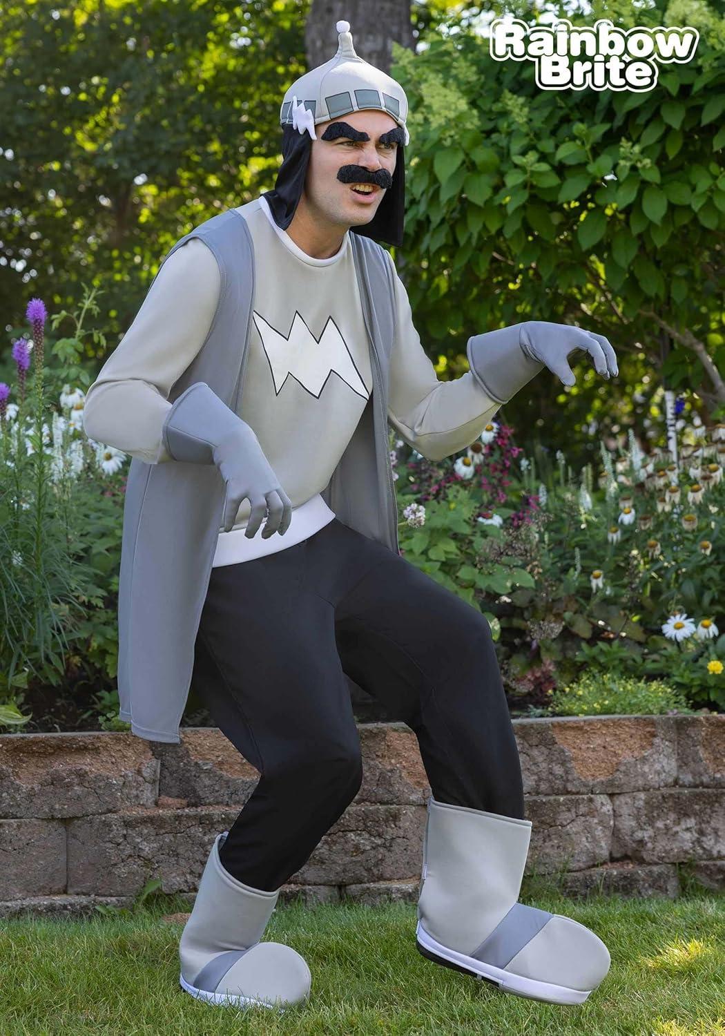 Oh no! It looks like Murky Dismal is up to his gloomy tricks again, and he’s ready to bring a whole lot of grey to your world! As Rainbow Brite, I've got my eye on you, but I must say, you'll look fabulously villainous in this Adult Murky Costume! Whether you're plotting to uncolor Rainbow Land or just bringing some retro cartoon fun to a party, this officially licensed outfit captures Murky's miserable mood perfectly. From the stormy shirt to the evil eyebrows, you'll have everything you need to turn any event into a dreary delight! But don't worry, even villains like Murky can't spoil all the fun when you look this good! This Murky costume is packed with wicked details straight from the 80s TV show! The grey tunic, complete with printed stormy graphics, mirrors Murky's moody attitude, while the foam-backed vest and jersey knit gloves add that extra touch of sinister style. And what's Murky without his signature helmet and lightning bolts? You'll be ready to frown and scowl all night with the included hat, which features foam-backed lightning bolts and a black fabric piece just like Murky's! Plus, with foam-backed shoe covers, you can stomp out the color in any shoes you wear. Every piece of this costume is designed for maximum villainy; right down to the adhesive mustache and eyebrows for the full Murky Dismal look! No Murky Dismal transformation is complete without his villainous accessories. From the gray tunic to the perfectly shaped mustache, this costume has all the gloomy details you need to become Rainbow Brite's biggest nemesis. It's perfect for fans of retro cartoons, Halloween events, and even couples' costumes with your pal Rainbow Brite! The officially licensed outfit is exclusive, meaning you'll be the only villain stealing the show with such a spot-on recreation of Rainbow Land's most miserable bad guy. But remember! There's always room for a little fun, even if you're dressed like Murky! – Tunic – Vest – Hat – Pair of Gloves – Pair of Shoe Cover