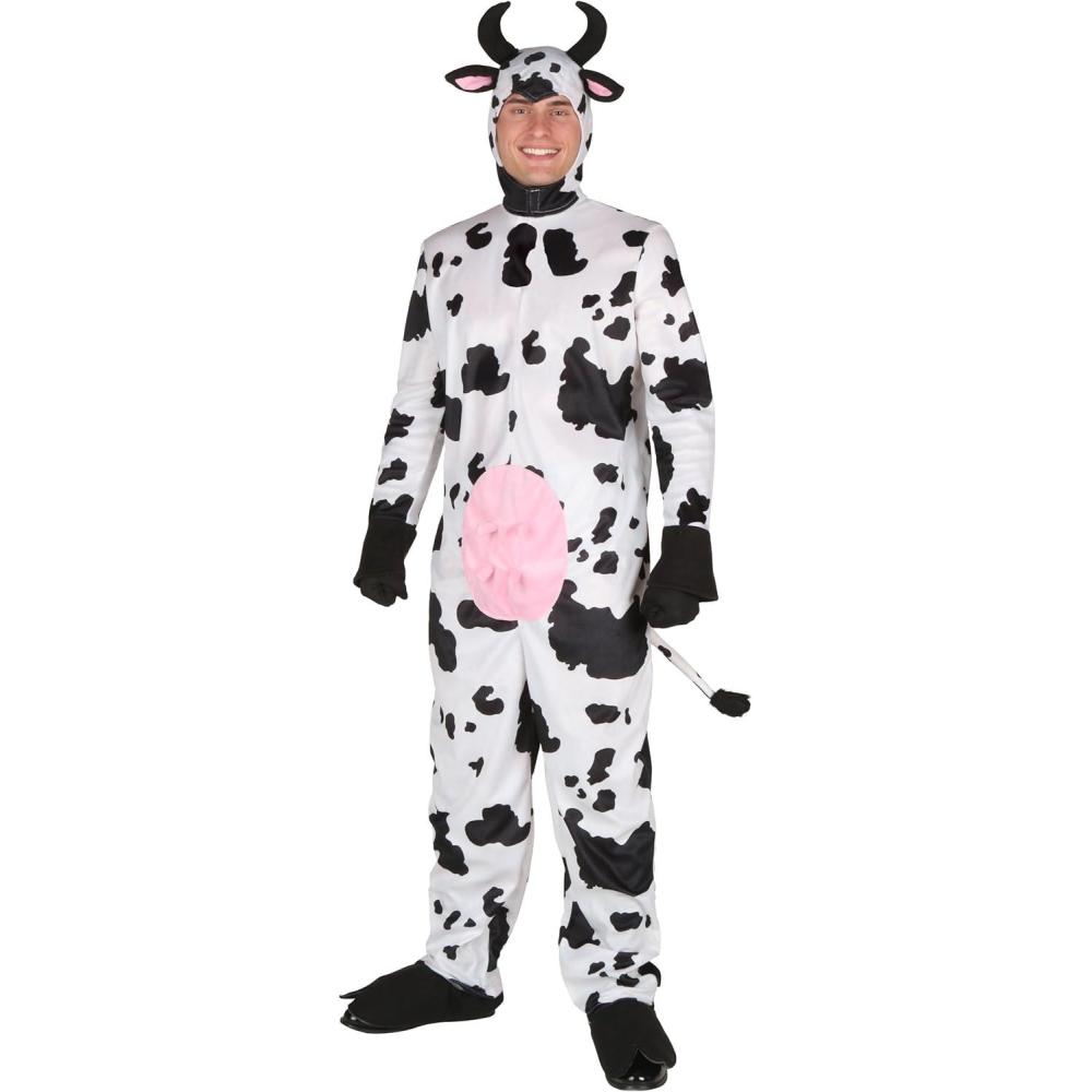 Adult Plus Size Deluxe Cow Costume – Velour Jumpsuit with Hood and Shoe Covers