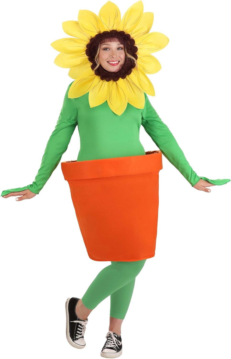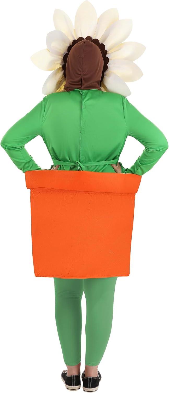 Unleash your inner botanist with this Adult Potted Flower Costume, designed to embody the spirit of a beautiful garden bloom. As an adult flower costume, you'll be the center of attention at any event, thanks to the lush green body, bright yellow petals, and round brown pot. This meticulously crafted Halloween costume features a long-sleeve tunic suit designed to mimic a flower in a pot and a flower hood adorned with vibrant yellow petals. You'll appreciate the leaf-shaped sleeve flaps, felt flower petals, and a flexible plastic rod in the flower pot, all contributing to a realistic and charming look. This adult plant costume is brought to you by Fun Costumes, a brand renowned for its passion and expertise in creating the best Halloween costumes in the world. Our costumes are not only fun but also quality and durable, ensuring that when you choose our Potted Flower Costume, you're choosing a product crafted with care and designed to last. Crafted with select fabrics of felt, jersey knit, and knit mesh, this costume is designed for comfort and durability. The quality of the materials ensure the costume will be comfortable to wear and can withstand multiple uses, making it a perfect choice for future costume adventures or to pass it on to someone else. The Potted Flower Costume is a great fit for most adults, you can move freely and enjoy your event to the fullest, embodying the spirit of a beautiful, blooming flower.