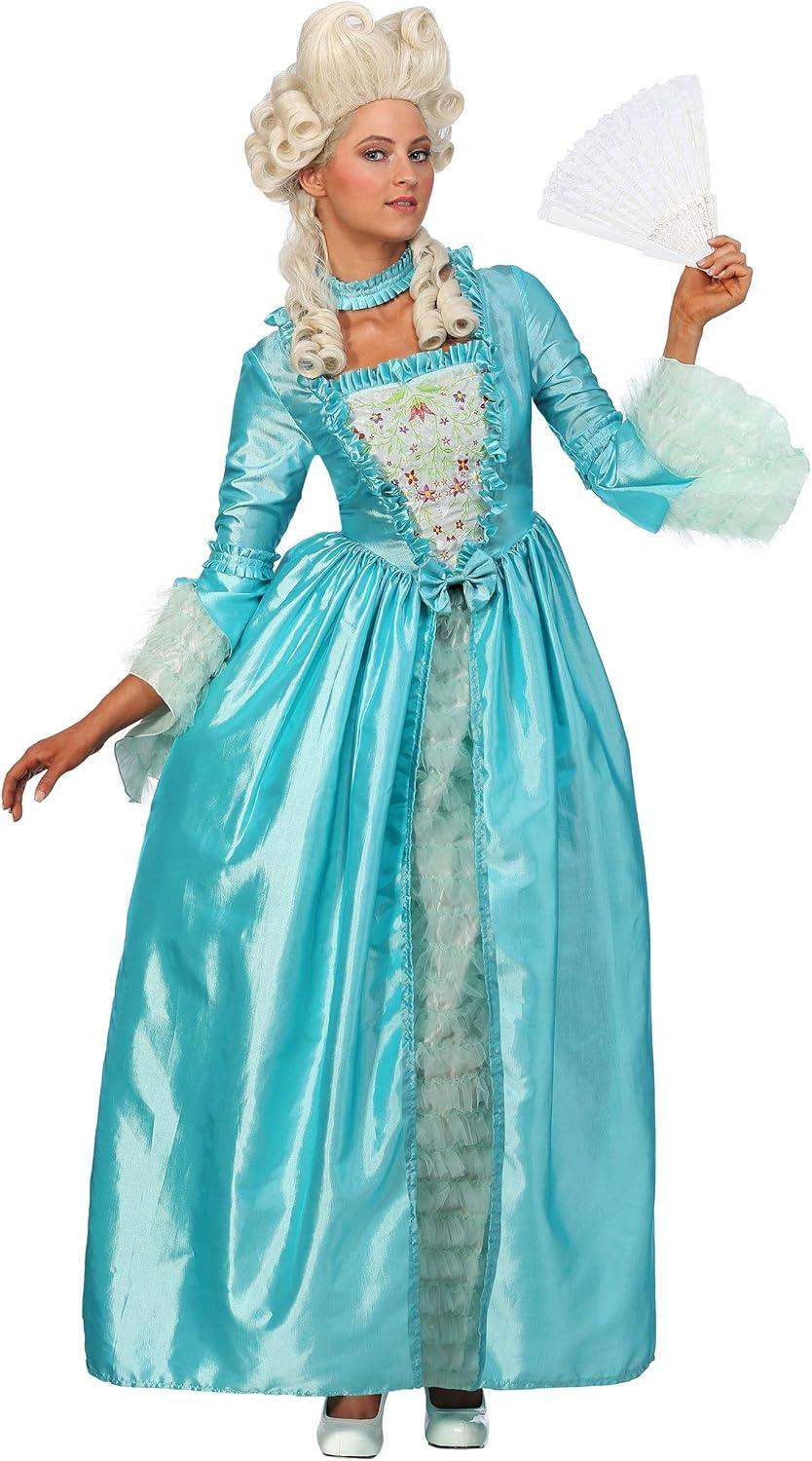 We love creating authentic-looking costumes for all your favorite character figures, both fictional and historic! Our in-house design team is always focused on giving you the best of experiences, too. That makes for a perfect combination when it comes to elegant looks like our Marie Antoinette. It's designed to look like you've stepped through time but still have a modern feel that's comfortable to wear. This Marie Antoinette costume features a full-length blue gown and a matching blue choker. The dress has a full skirt with pleating at the waist and a lighter blue ruffle panel down the front. The bodice has a front panel with Rococo floral detailing and has three-quarter sleeves. It is finished with layers of full light blue ruffles. The square neckline is framed with tight silky ruffles and offset with a ruffled choker.
