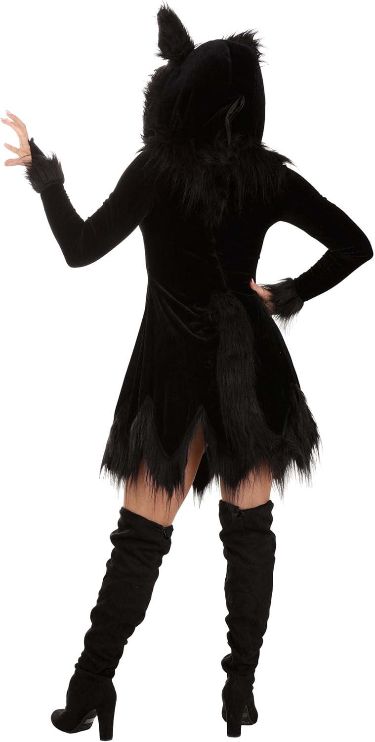 Adult Wolf Halloween Costume | Women’s Werewolf Hooded Dress with Tail and Ears(Black)