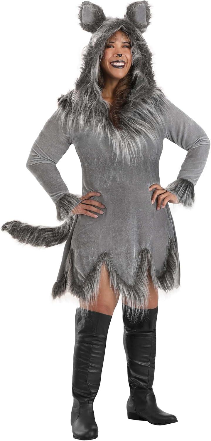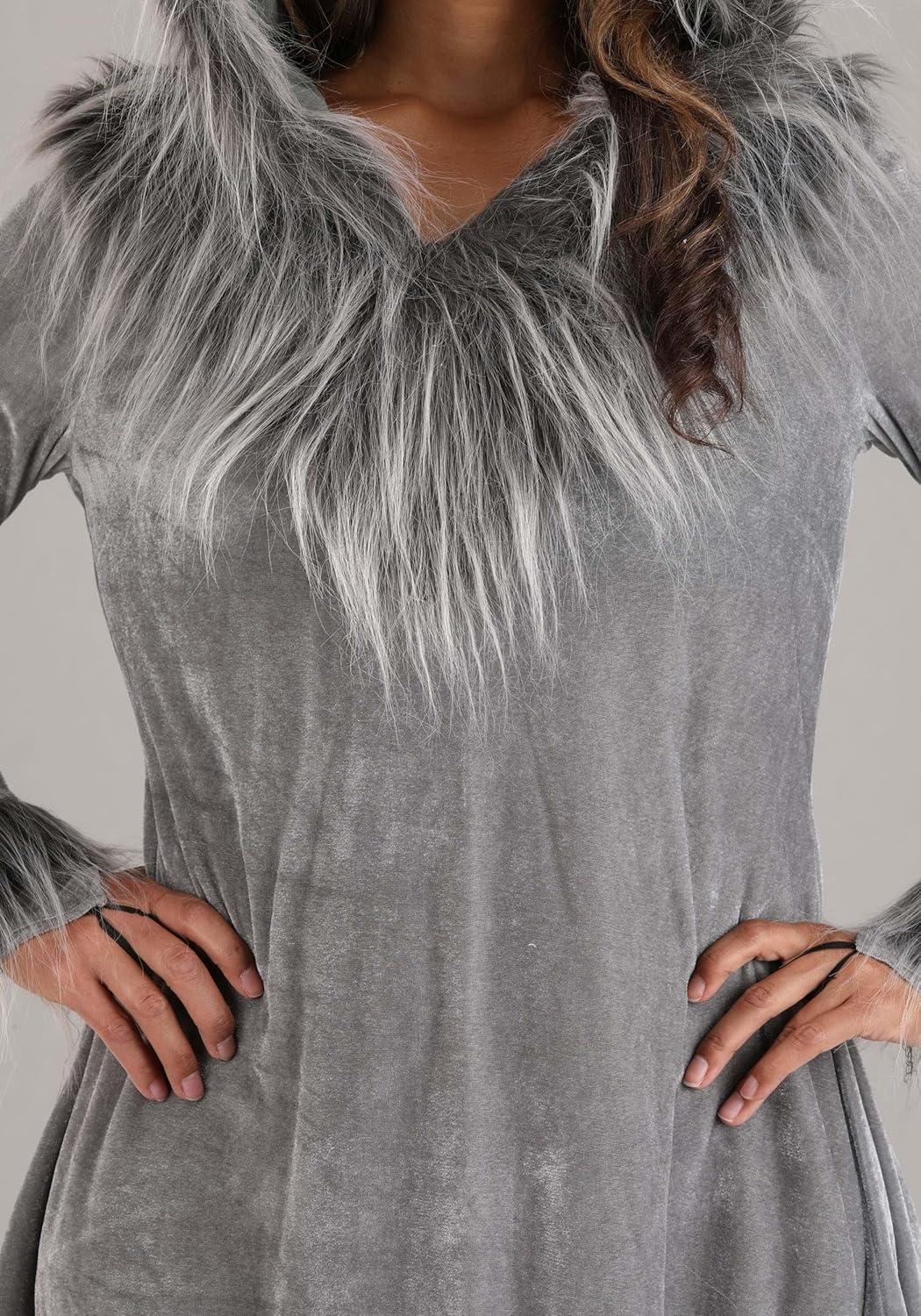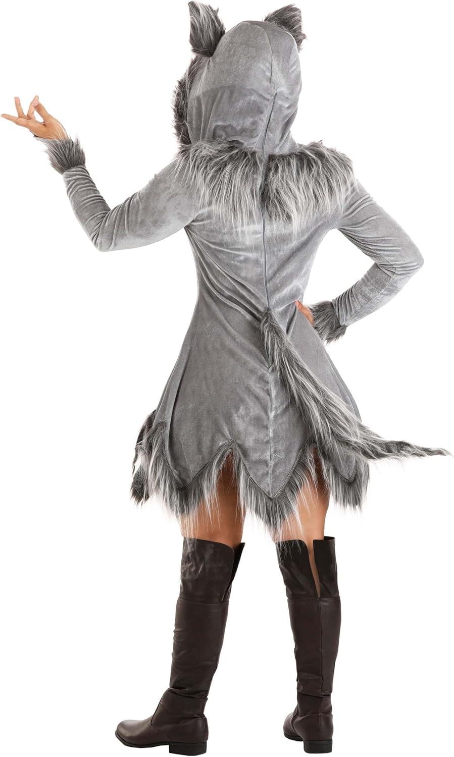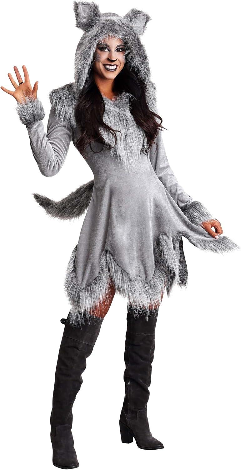 Adult Wolf Halloween Costume | Women’s Werewolf Hooded Dress with Tail and Ears(Gray)
