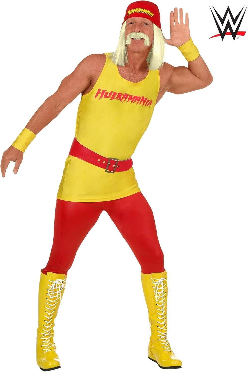 Adult WWE Hulk Hogan Halloween Costume | Hulkamania Complete Outfit for Men | Professional Wrestler Cosplay Costume