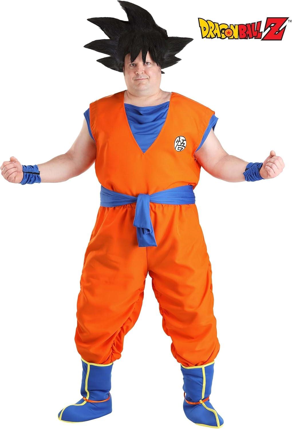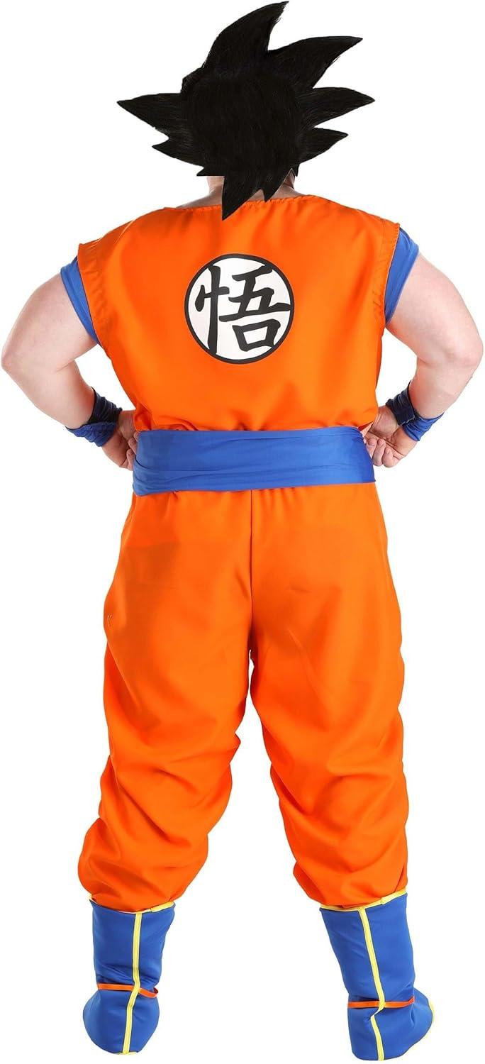 Fun Costumes Plus Size Dragon Ball Z Goku Costume for Adults: Kame Ha Me Ha your way into your yearly Halloween party with this overpowered Men's Plus Size Dragon Ball Z Goku Costume. Artfully and carefully crafted, this officially licensed Goku costume will let you make a powerful impression wherever you go! This legendary outfit is a faithful recreation of Goku's iconic attire. The adventure begins with the classic blue undershirt and vibrant orange overshirt, complete with the unmistakable chest and back patch that signifies your transformation into the mighty Saiyan warrior. The loose-fitting pants, designed for maximum comfort, feature an elastic waist that ensures a perfect fit throughout the night. To complete the look, a stylish blue sash belt adds an authentic touch, reflecting Goku's unparalleled style. No Goku ensemble would be complete without his signature accessories. Included with the costume are Goku's legendary wristbands, which symbolize his unwavering strength and determination. Additionally, the ensemble features blue foot covers, allowing you to step into Goku's world with confidence and style. Whether you're attending a costume party, cosplaying at a convention, or simply unleashing your inner Saiyan for a night of fun, this Adult Goku Costume is the ultimate choice. Embrace the power of Goku and leave a lasting impression as you embody the spirit of this beloved Dragon Ball Z character. It's time to channel your inner Super Saiyan and make a splash as the hero of the night! Product Details: 100% polyester Orange pullover gi top has attached blue shirt inset Goku kanji printed on front and back Orange pants with elastic in waist and ankles Blue satin waist sash Blue foot covers have yellow piping, elastic band under foot Blue armbands fasten Size Chart: 2X: Chest=54″; Shirt Length=29″; Waist=42″ – 56″; Inseam=35″; Pants Outseam=50″ 3X: Chest=58″; Shirt Length=30″; Waist=46″ – 60″; Inseam=35 1/2″; Pants Outseam=50″ 4X: Chest=62″; Shirt Length=31