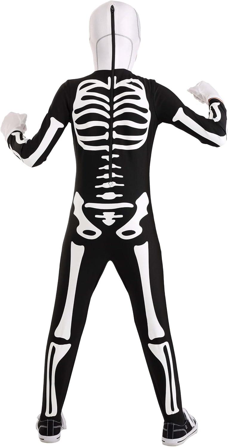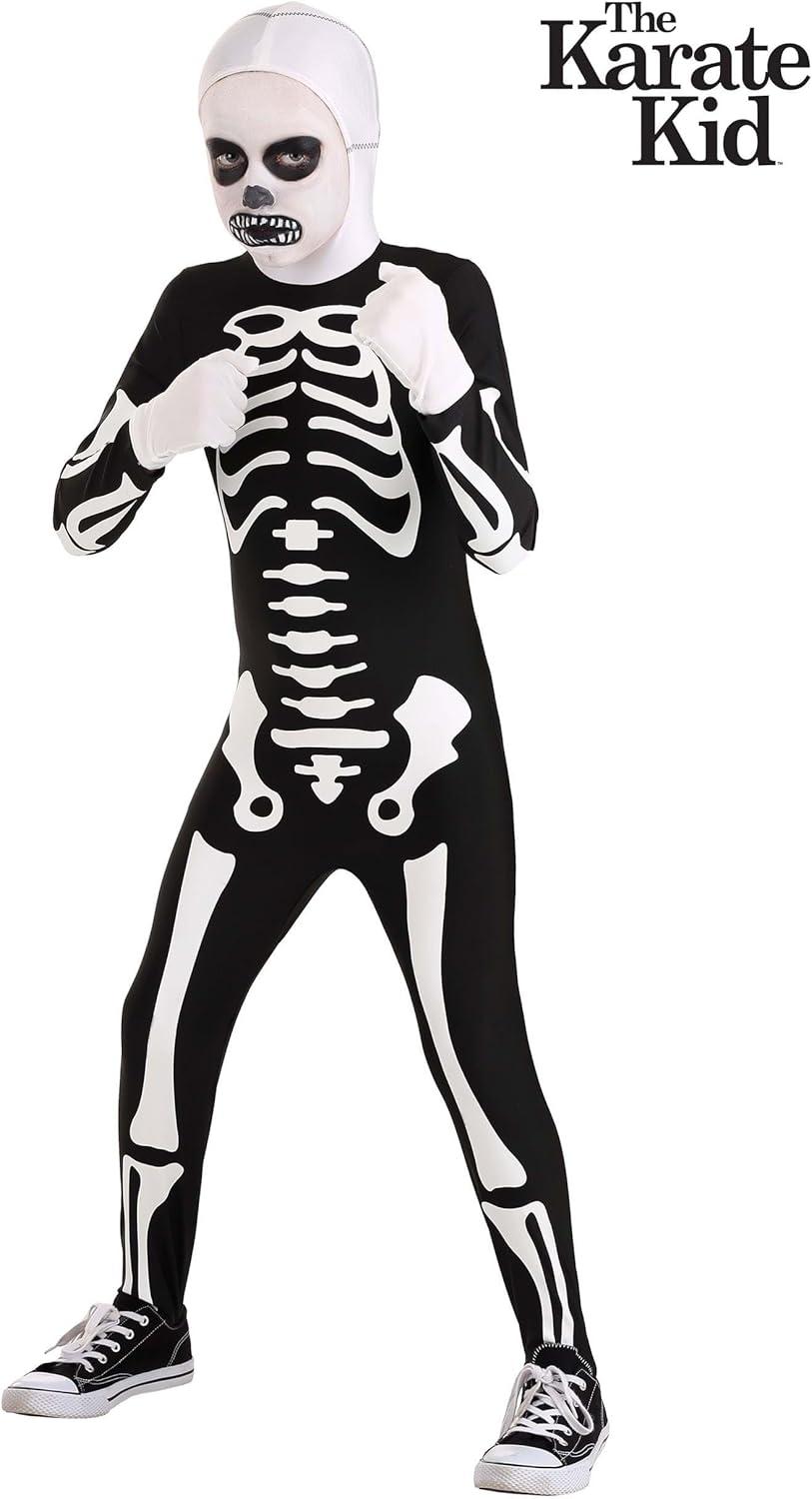 Authentic Karate Kid Skeleton Suit | Kids Jumpsuit Costume With Printed Bones, Hood and Gloves | Halloween Outfit