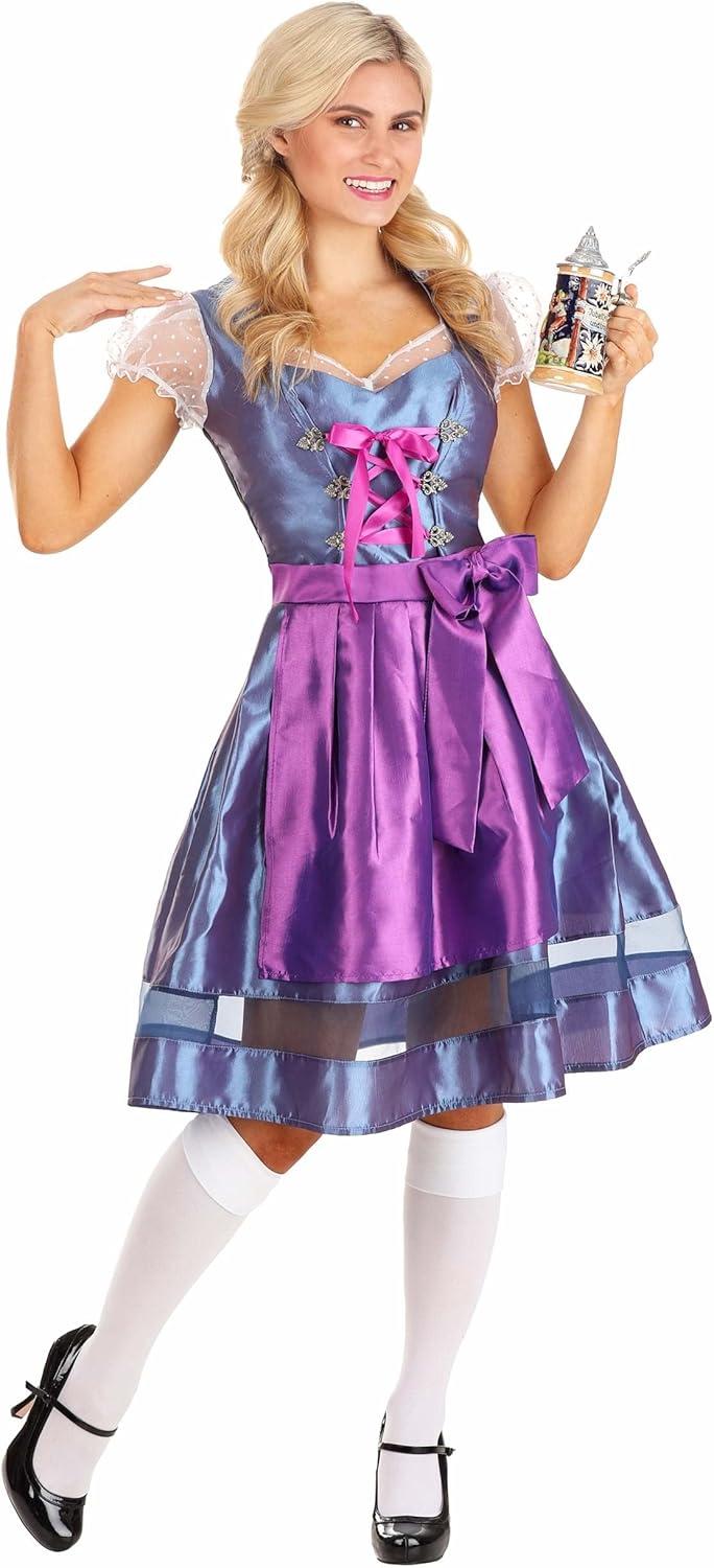 Dive into the Oktoberfest spirit with this Oktoberfest costume women will love. It's the Elegant Tavern Maid Dirndl Dress Costume, a medium-sized ensemble that's more than just a costume. As one of the most unique Oktoberfest costumes women can find, it's a testament to your appreciation for culture and festivities, promising to make you the center of attention at any event. This Tavern Wench Costume women's edition is constructed from 100% polyester taffeta, jersey knit, and organdy, offering a unique fusion of comfort and elegance. The Maid Dress features a taffeta bodice front and skirt that exude luxury, while the jersey knit back panel guarantees flexibility and ease of movement. What sets this Dirndl Dress apart are its distinctive details, which are unlike the usual Oktoberfest attire. The satin ribbon lacing on the bodice front threads through antique gold-tone metal filigree eyelets, infusing a vintage German charm into the dress. This German women's outfit includes a fashionable skirt and apron, designed with meticulous attention to detail. The German style is evident in the all-around knife pleats of the skirt and the decorative ties on the apron, making the dress versatile and appropriate for a variety of occasions. In conclusion, the Elegant Tavern Maid Dirndl Dress Costume is more than just a Dirndl; it's a harmonious blend of comfort, style, and tradition. Whether you're attending a beer garden event or an Oktoberfest celebration, this Bavarian Trachten is the perfect choice for you. – Dress w/ Attached Apron