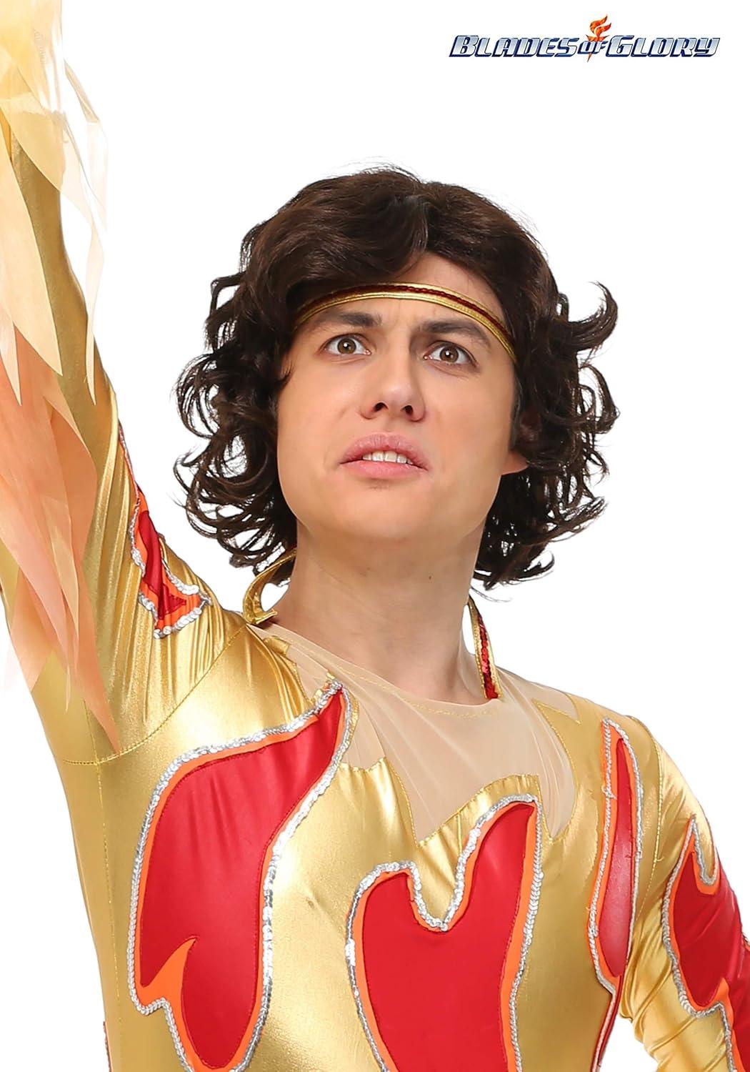 Blades of Glory Chazz Wig Costume – Wavy Brunette Hair, Mesh Cap, Officially Licensed