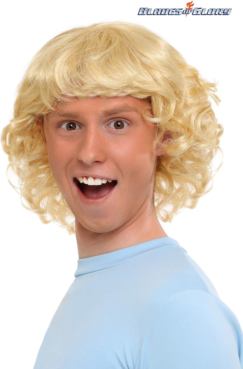 Skate your way into a gold medal costume this Halloween with this officially licensed Blades of Glory Jimmy Wig. This wig is styled with blonde wavy hair and bangs just like everyone's favorite figure skater. The wig is made of synthetic hair on a mesh cap. The mesh cap features elastic edges for a snug fit. – Wig