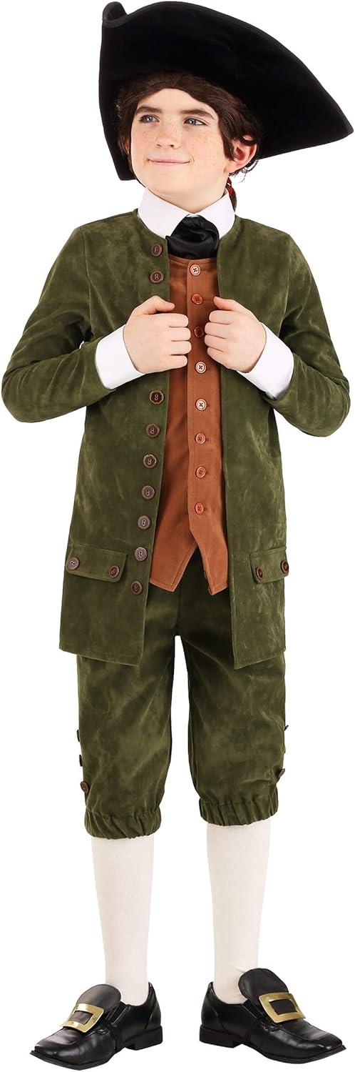 Boys Colonial Child Costume With Jacket, Pants, Scarf, & Hat | Play Pretend And Dress Up Clothes For Halloween