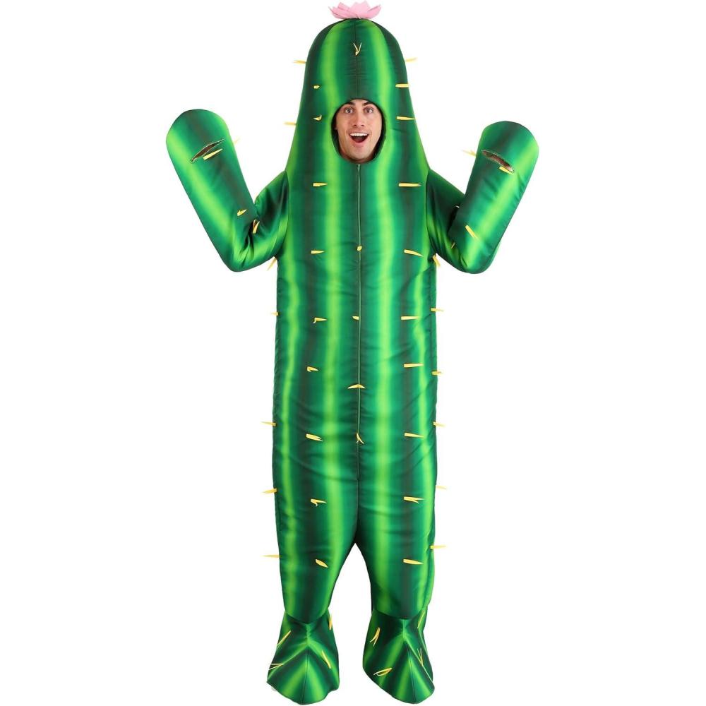 Cactus Costume for Men And Women | Adult Desert Plant Jumpsuit with Flower | One Piece Stuffed Outfit