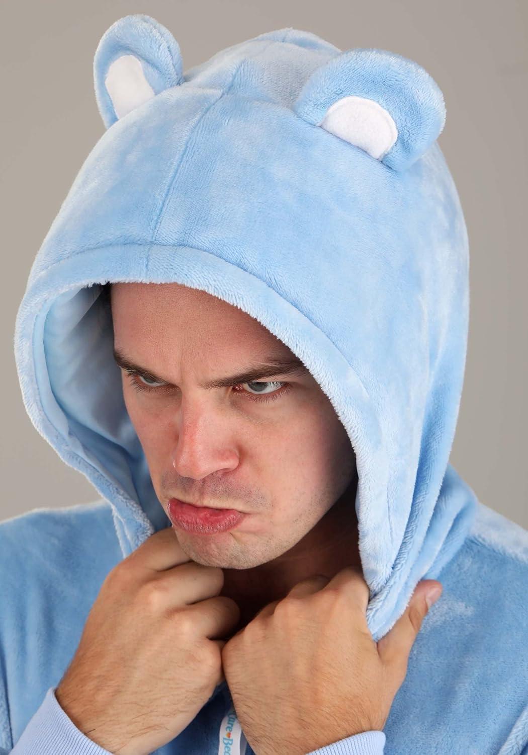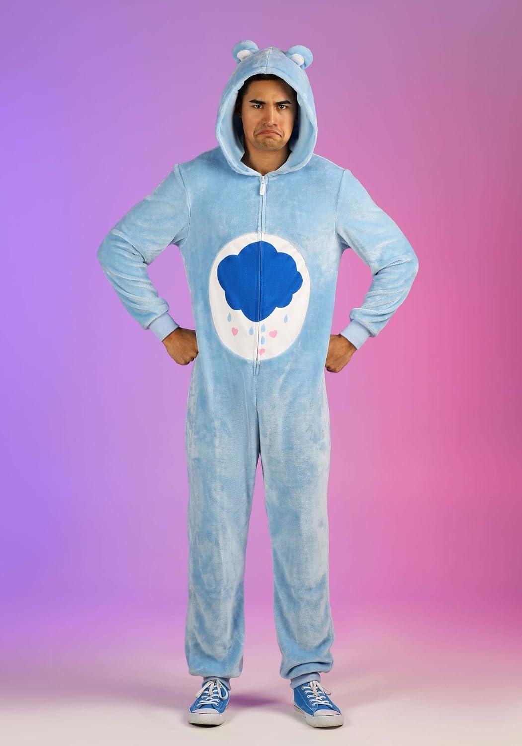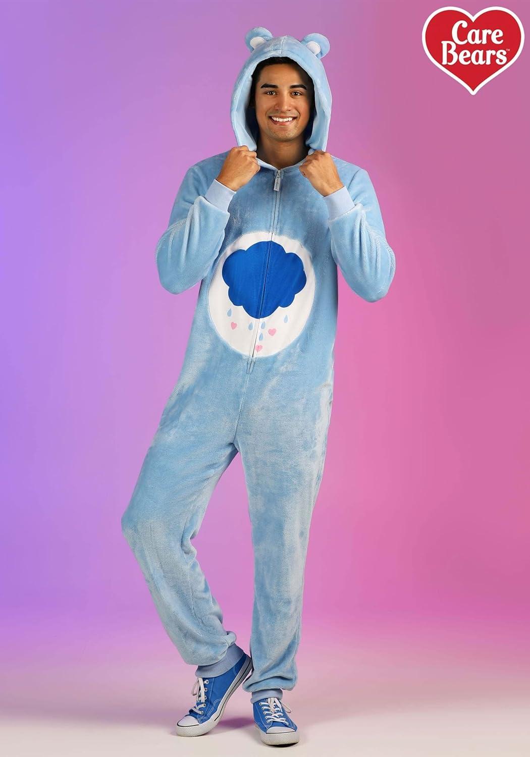 Care Bear Grumpy Bear Hooded Jumpsuit Costume for Adults with Makeup Kit Bundle Option(Costume)