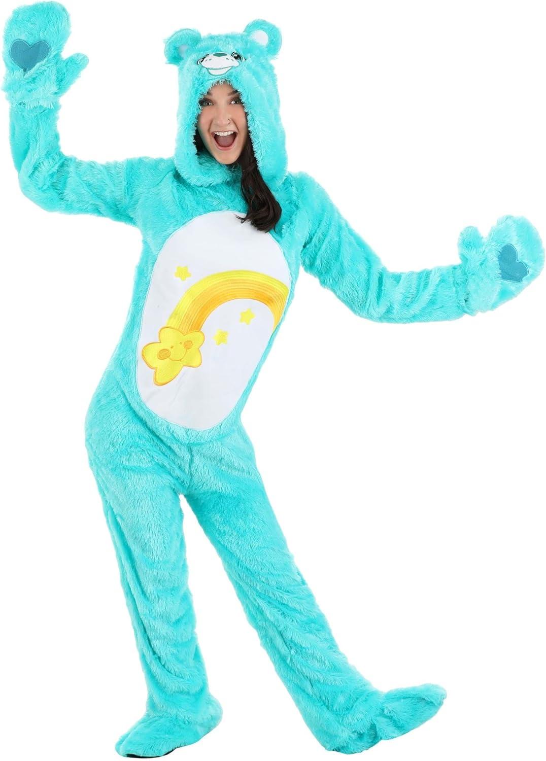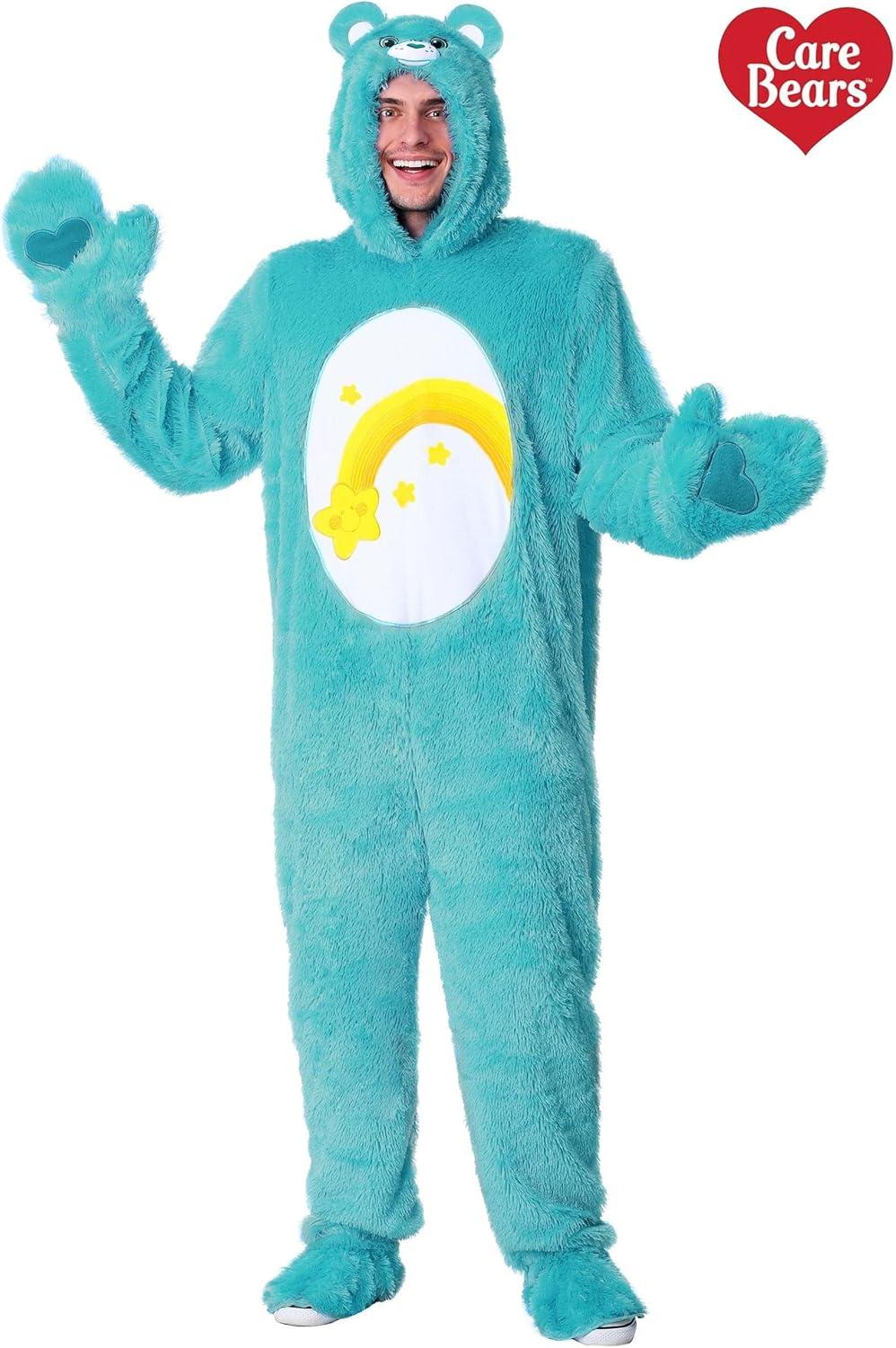 Care Bears Adults Wish Bear Costume Unisex, Shooting Star One-piece Halloween Outfit, Blue Belly Badge Animal