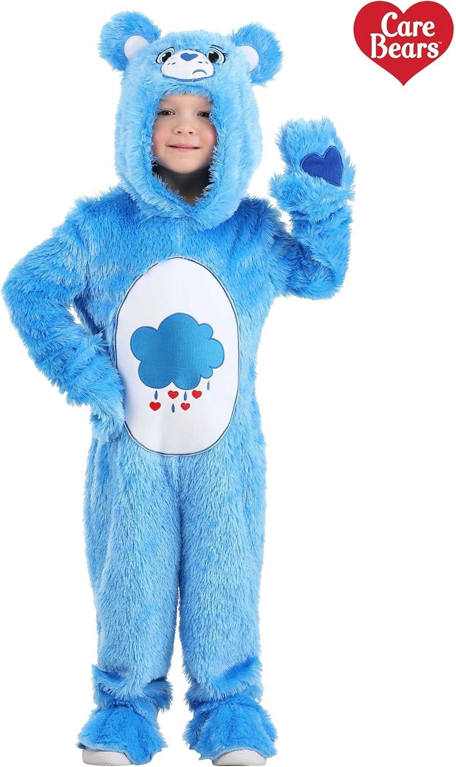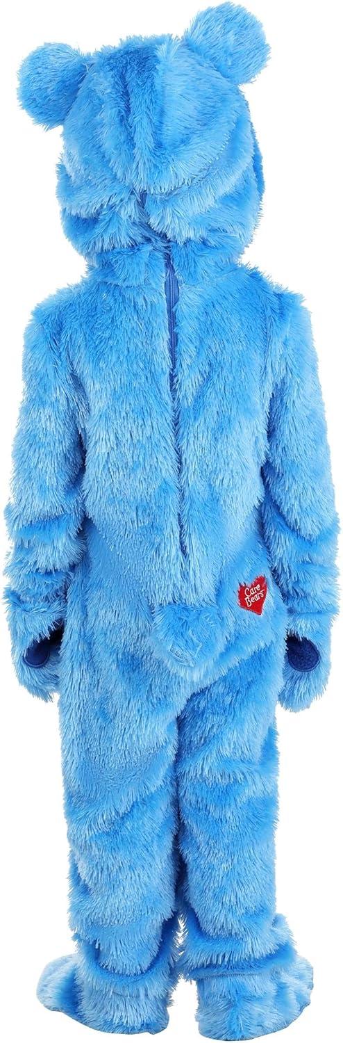 Grumpy Bear Toddler Care Bears Costume: Your kiddo will be comfortable and cozy in this adorable Grumpy Bear Care Bear Costume! It's guaranteed to create the cutest kids get-together imaginable. Let them slip into this snuggly Grumpy Bear suit to turn your kiddo into a Care Bear from head to toe. Product Details: Get ready for a cuddle-filled adventure with our Classic Grumpy Bear Care Bear Toddler Outfit! This adorable, officially licensed jumpsuit is crafted from soft, blue faux-fur, ensuring your little one is comfy and cozy while they explore Care-a-Lot. The jumpsuit features Grumpy Bear's iconic thundercloud on the white belly patch, bringing this beloved character to life. The hood isn't just cute with its fluffy bear ears, but also has an embroidered face that's sure to melt hearts. And let's not forget the heart print on the rump – a signature Care Bear detail! Matching shoe covers complete the transformation, turning your kiddo into a full-fledged Care Bear from head to toe. The mitts even have appliqued hearts on the palms, adding a touch of love to every high-five and hug. Whether it's for playtime or a costume party, this outfit is perfect for little fans of these magical, caring bears! Product Features: 100% polyester faux fur Jumpsuit has back zipper and attached hood Hood has embroidered face with attached ears Jumpsuit has appliqued symbol on tummy and logo on butt Officially licensed Mitts have appliqued hearts on palm Shoe covers have soft knit ankle and elastic strap for under shoe About Us: Fun Costumes are exclusively made by us and begin with passion, teamwork, and industry expertise – proof that with the right people even a simple idea can grow into something incredible. We started in a small garage in Minnesota, and now we're creating costumes for people all around the world. Pick up this Grumpy Bear Costume for your toddler and so they can have a magical Care Bear adventure this Halloween! – Hooded Jumpsuit With Attached Gloves – Pair of F