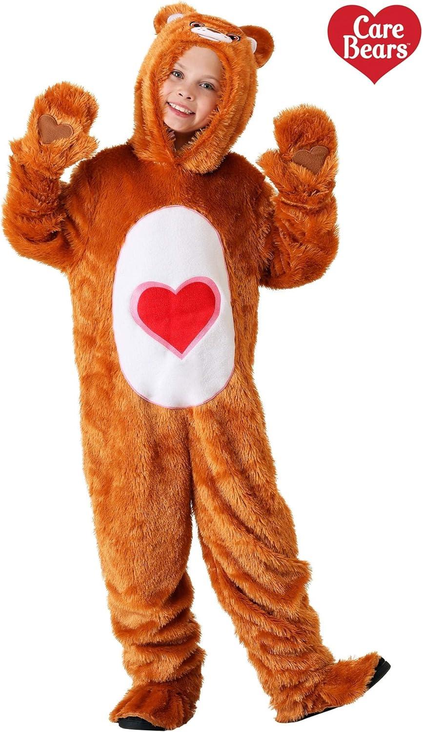 Care Bears Classic Tenderheart Bear Costume for Kids | Toddler Hooded Brown With Heart Jumpsuit | 80s Cartoon