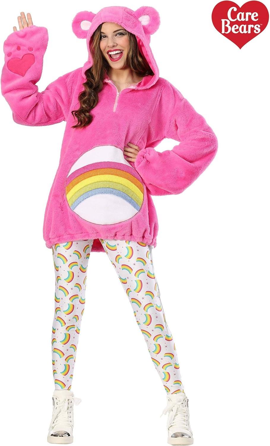Care Bears Deluxe Cheer Bear Hoodie Halloween Costume for Women | Rainbow Leggings | 80s TV Cartoon Outfit(Care Bears Deluxe Cheer Bear Hoodie)