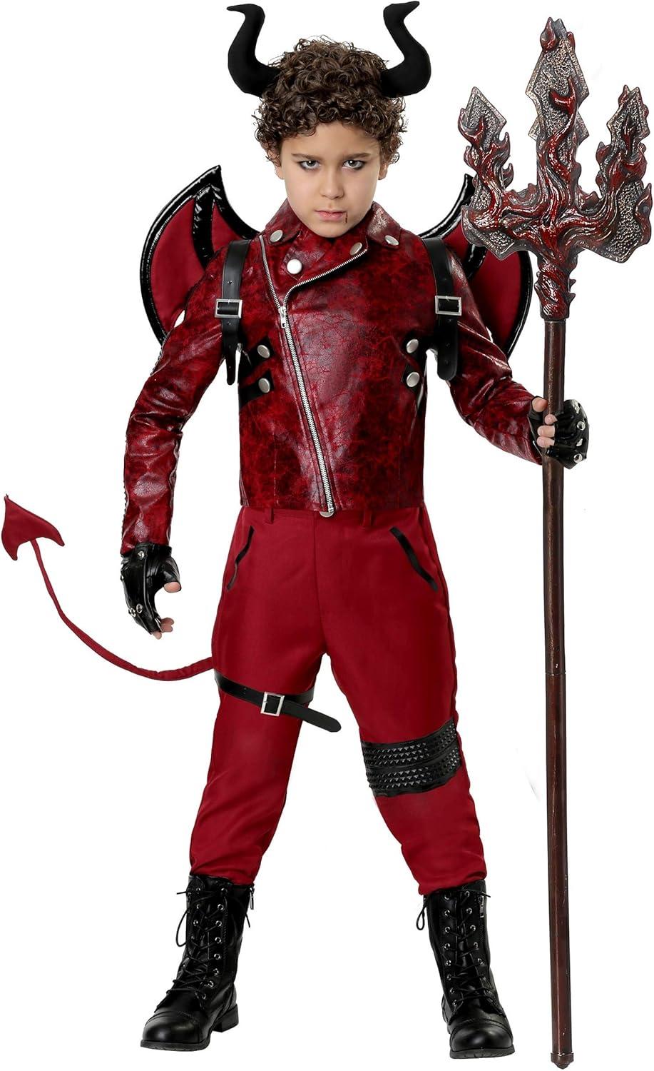 Child Devil Halloween Costume | Dangerous Devil Outfit With Jacket, Pants, Horns, Wings, & Tail(Bundle W/ Pitchfork)