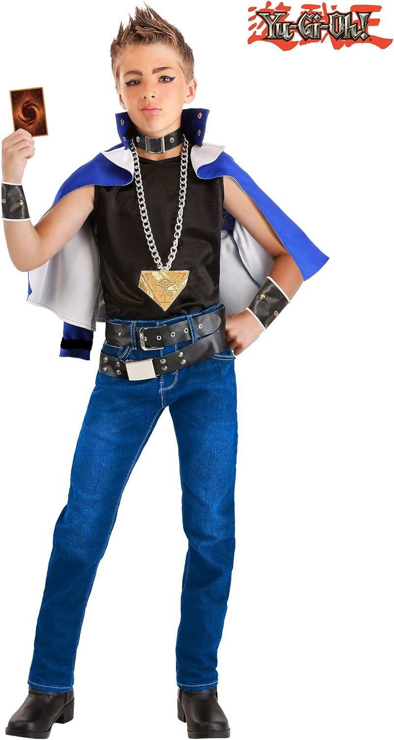 The Fun Costumes Yu-Gi-Oh! Costume The Shadow Games never truly end. And neither does our love for the Yu-Gi-Oh! anime and its spectacular characters. If you and yours are the same, maybe it is time to get your hands on that Millennium Puzzle and see what that old Pharaoh is up to! Fortunately, the squad of our in-house Made by Us design team knows a thing or two about bringing together an epic anime costume to you can strike quite a pose, even in the face of the Shadow Realm. Attention to Detail This Yu Gi Oh! Costume is an officially licensed look featuring Yami Yugi's style. This costume is a sleeveless shirt with a jacket-like cape that connects with snaps. Accessorize the look in true anime style with two belts, a choker, and wrist cuffs. The final touch is the magical Millennium Puzzle and your tyke is ready to duel! Product Details : Snap buttons on cape snap onto the front of the shirt Jacket and lining 100% polyester, shirt 95% polyester, 5% spandex Belts, bracelets, and choker are 100% PU Bracelets have hook and loop fastener 2 different designed belts Millennium puzzle chain necklace Officially licensed About Us: Fun Costumes are exclusively made by us and begin with passion, teamwork, and industry expertise decades in the making. Our products are proof that with the right people even a simple idea can grow into something incredible. We started in a small garage in Minnesota, providing costumes to our local community, and now we're creating costumes for people all around the world! Command the Shadow Games in true Pharaoh style in this Yu-Gi-Oh! costume!
