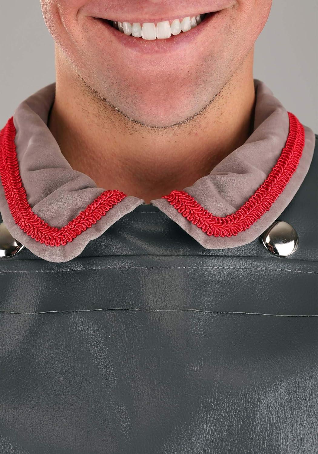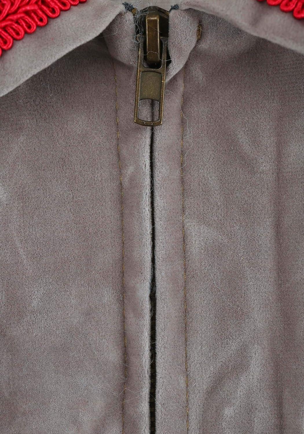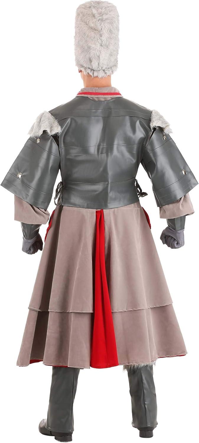 The Fun Costumes Castle Guard Costume Give our Castle Guard costume a try for a classic Halloween costume choice. Made by Us right in our own design studios, our talented team of artists, designers, and developers crafted this costume with care. We put extra emphasis into each detail and we use expert construction for a top-quality product. This Castle Guard Costume won't disappoint! Product Design: We designed this costume as a jacket, vest, hat, pair of gloves, and a pair of boot tops. The gray tunic is attached to a male skirt at the waist. The jacket zips from the waist up, while the skirt hangs down to the shins and is open in the middle. The skirt has red panel overlays with black appliques and a soft, red underskirt that peeks out from the skirt. A gray, vinyl chest is embellished with silver grommets and faux black and white fur on the shoulders. The chest piece slips on over the head and ties on the sides. Faux fur also covers the included hat and boot covers. The gray boot covers are secured with elastic bands. Product Details: 100% polyester velvet, interlock knit & faux fur; 100% polyurethane foam Gray velvet frock coat jacket has center-front zipper, elastic at sleeve cuffs Jacket collar has red braid edging; skirt panels have appliqued red overlays Vest is foam-backed interlock with appliqued faux studs, fur shoulder flaps & twill tape waist ties Cylindrical faux fur busby-style hat has elastic band at back Foam boot tops have fur cuffs, elastic band under shoe Interlock gloves have wide, flared foam cuffs Size Chart: Standard: Chest=48″; Jacket Length=48″ About Us: Fun Costumes are exclusively Made by Us and begin with passion, teamwork, and industry expertise decades in the making. Our products are proof that with the right people even a simple idea can grow into something incredible. We started in a small garage in Minnesota, providing costumes to our local community, and now we're creating costumes for people all around the world. – Jacket – Ves