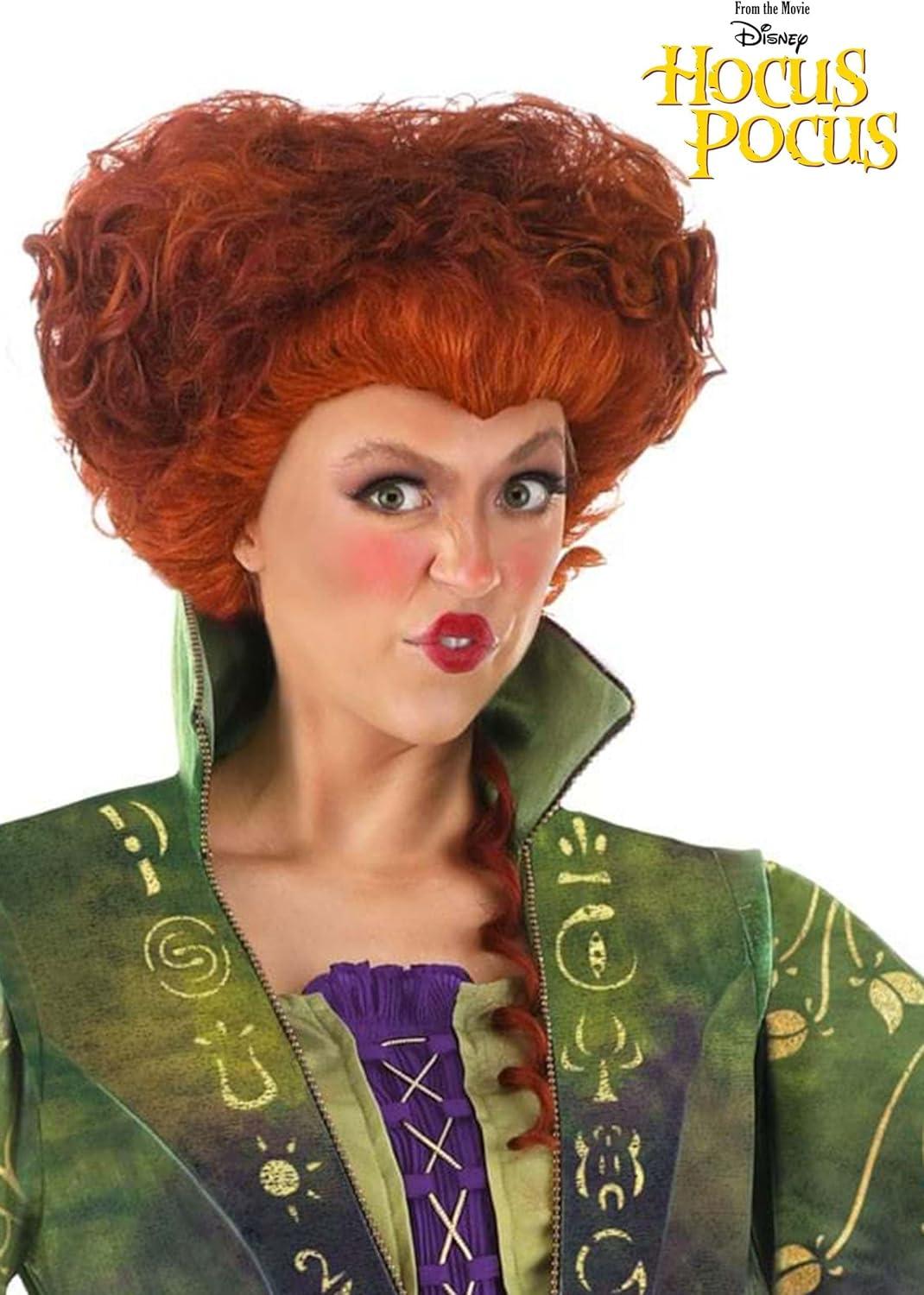 Disney Hocus Pocus Winifred Sanderson Wig, Sanderson Sisters Cosplay, Red Synthetic Curly Bouffant Hairstyle
