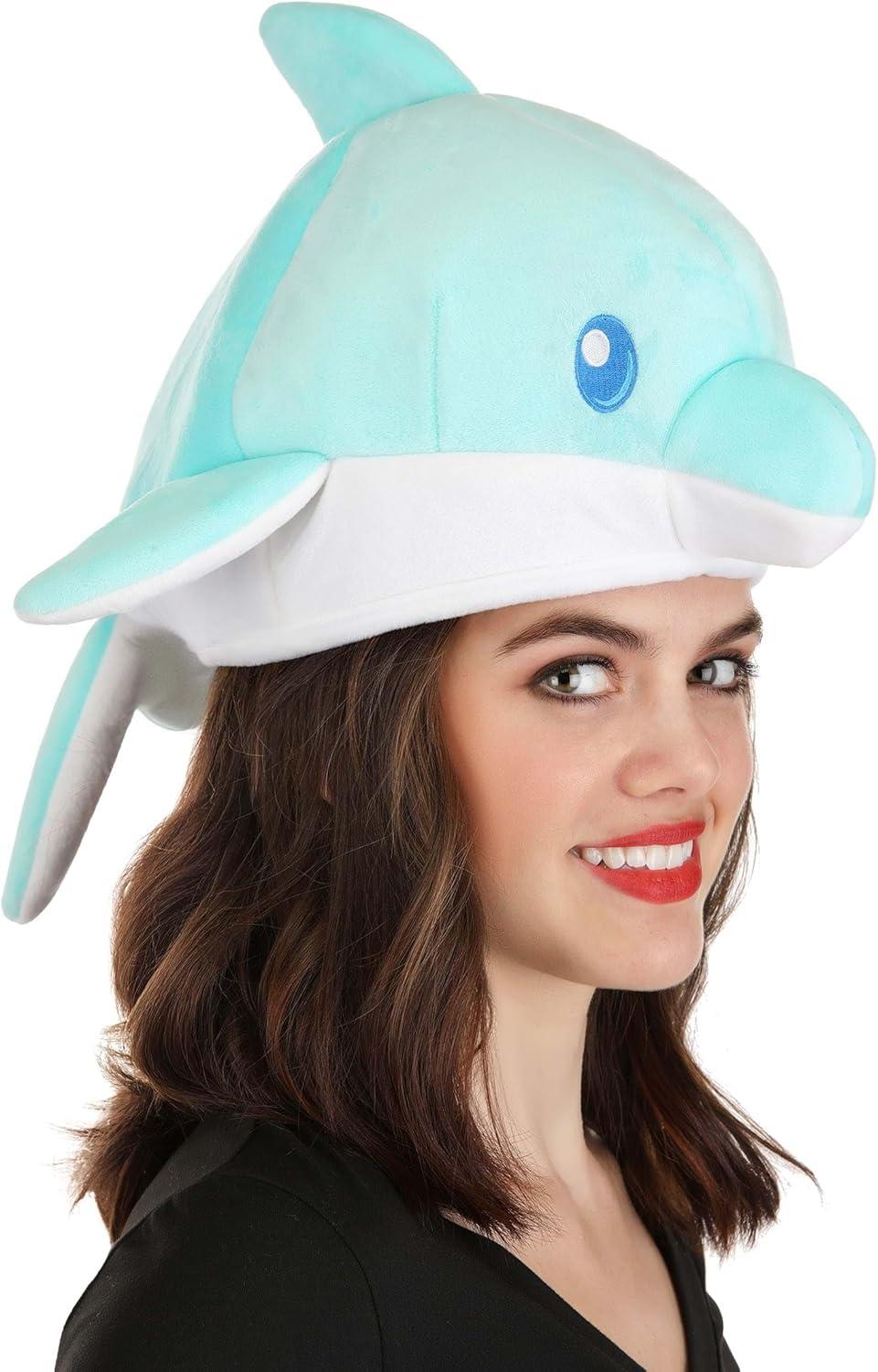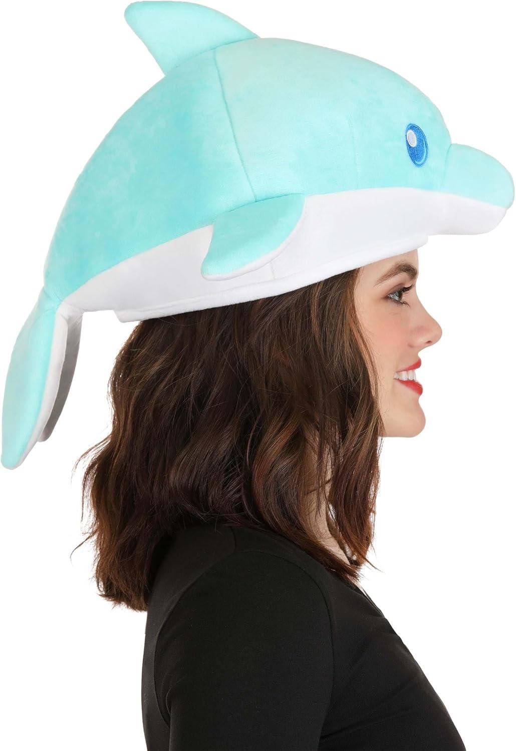 Dolphin Costume Hat Plush Animal Ocean Sea Creature Halloween Cosplay Accessory with Fins for Adults