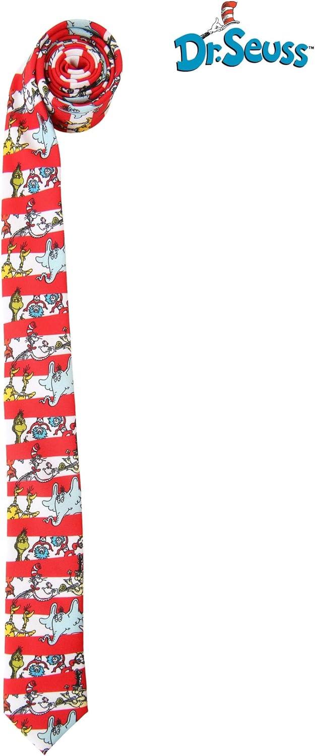 Dr. Seuss Characters & Stripes Necktie for Adults – Polyester Poplin with Printed Graphics