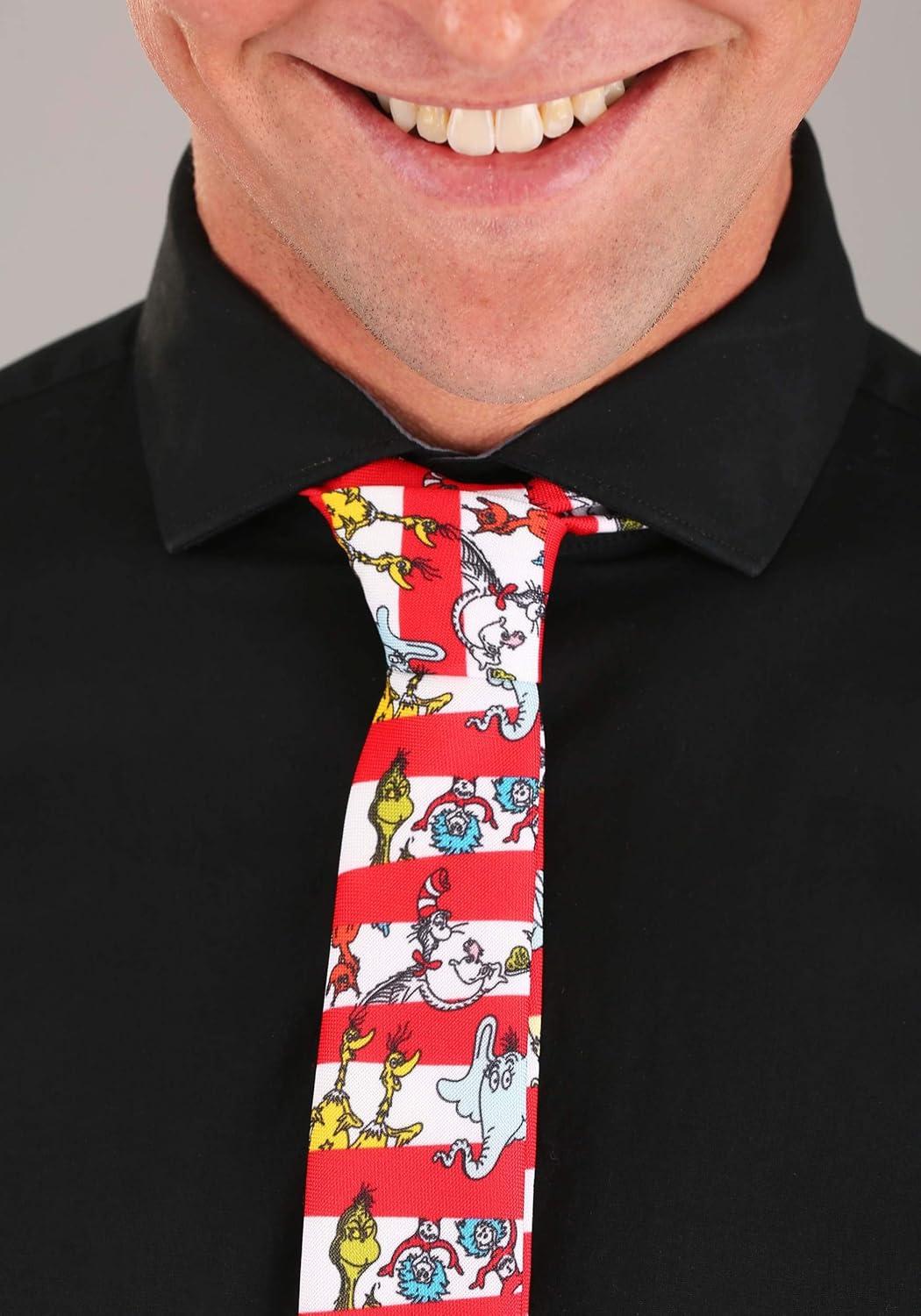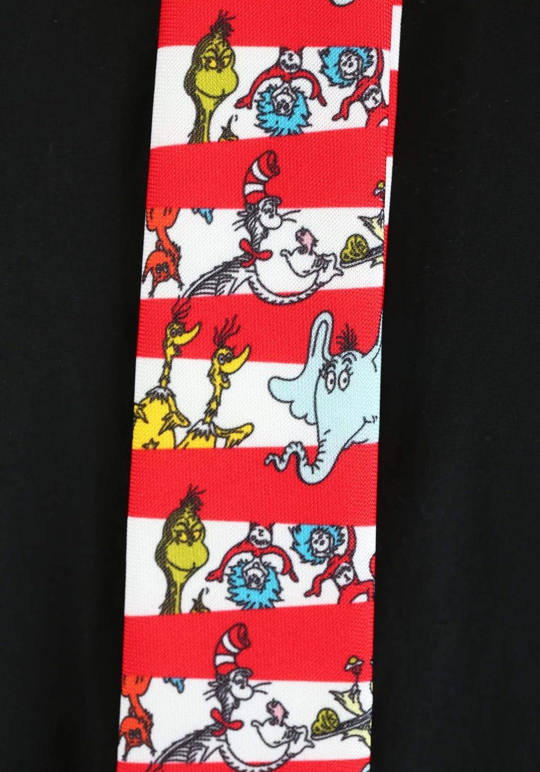 Why fit in when you were born to stand out in this Dr. Seuss Characters & Stripes Costume Necktie! This full-length red and white necktie features the most iconic Dr. Seuss characters in an all over stripe and character pattern. Bold and fun, this tie is perfect for jazzing up your party costume or for whimsical everyday wear. – Necktie