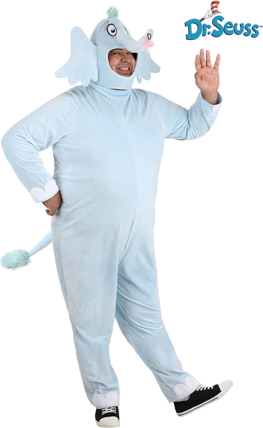 Dr. Seuss Horton Hears a Who Plus Size Costume Adult Velour Jumpsuit with Headpiece Officially Licensed