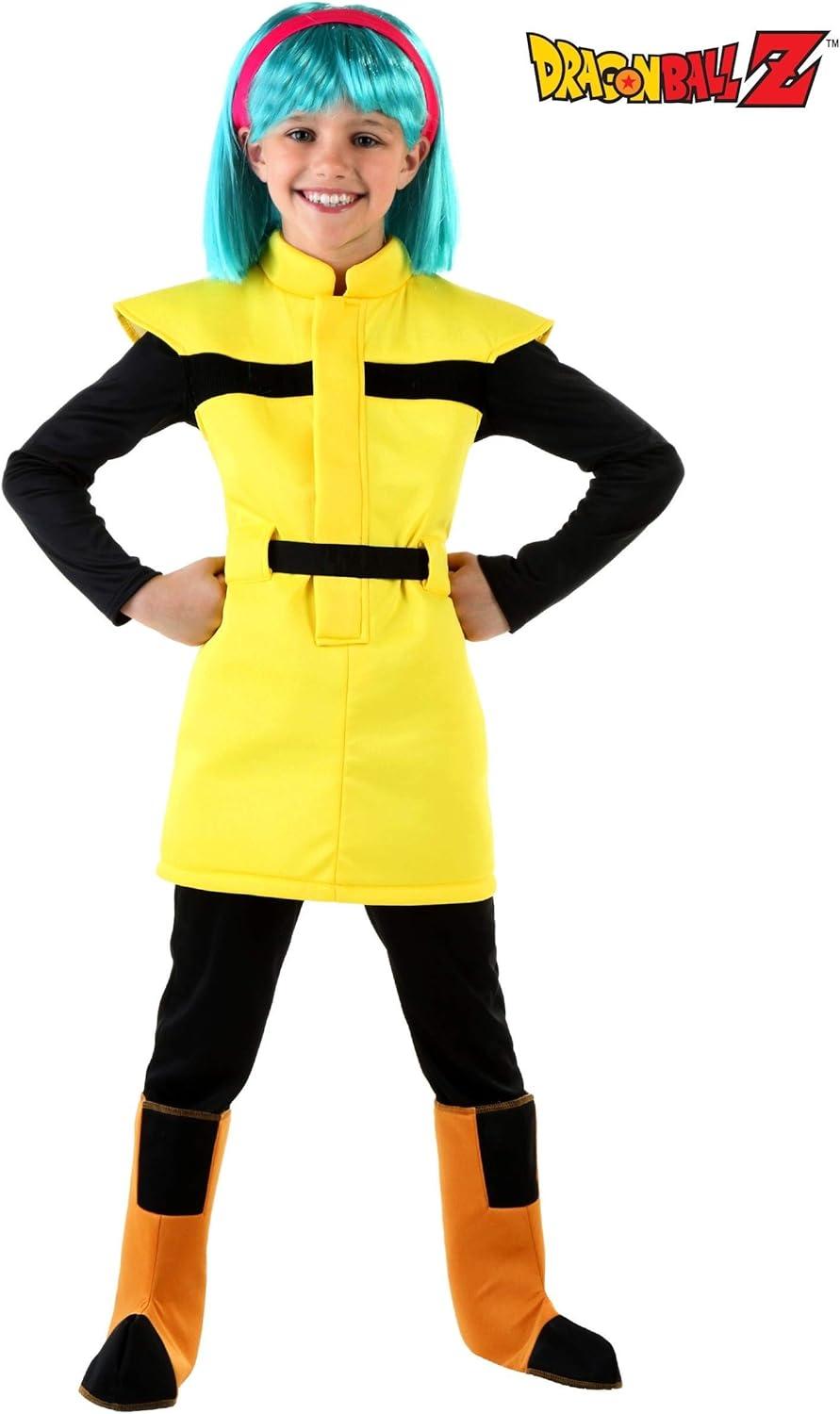 Dragon Ball Z Child Yellow Jacket Bulma Costume for Girls, Kids DBZ Costume With Turquoise Wig for Anime Cosplay