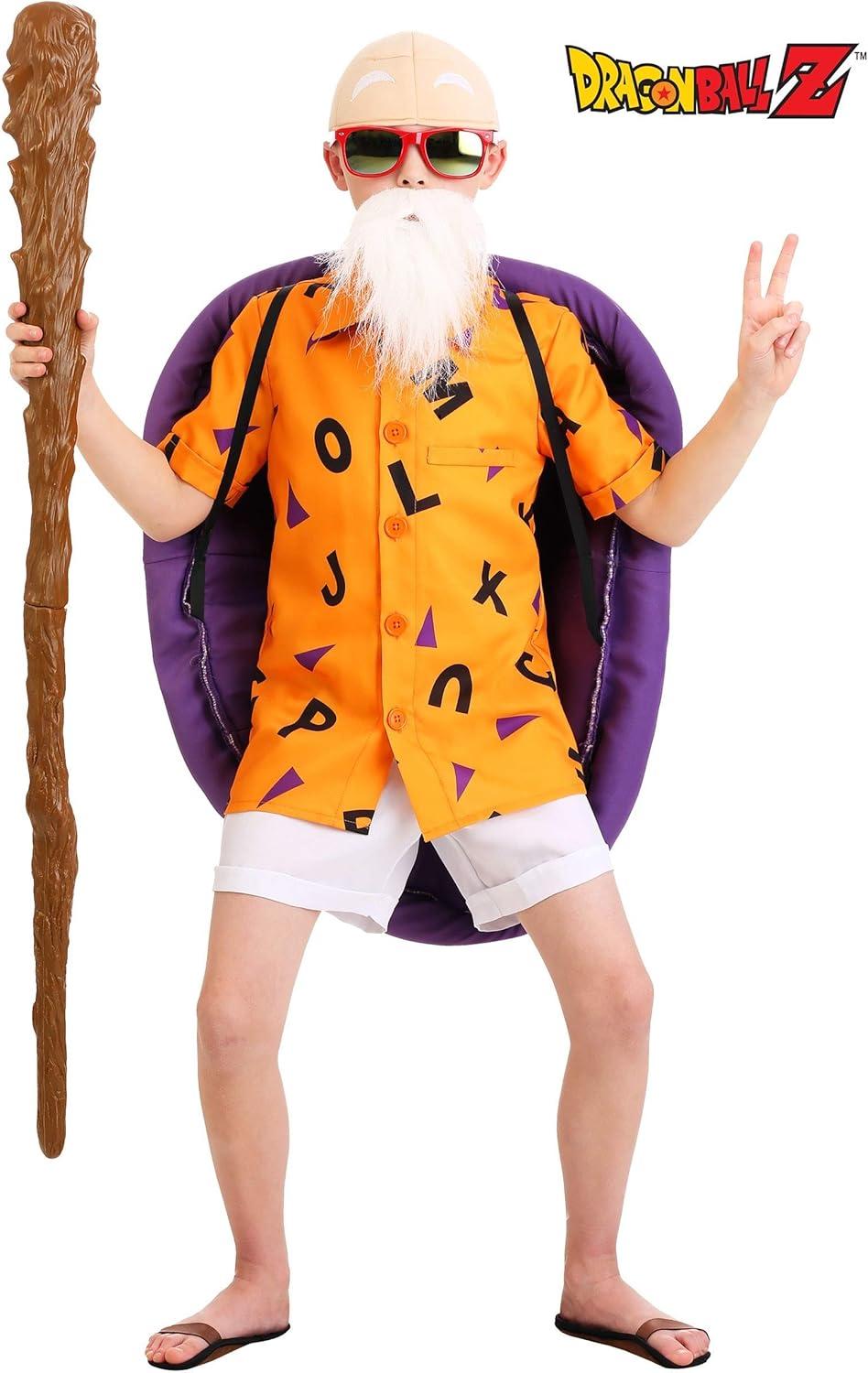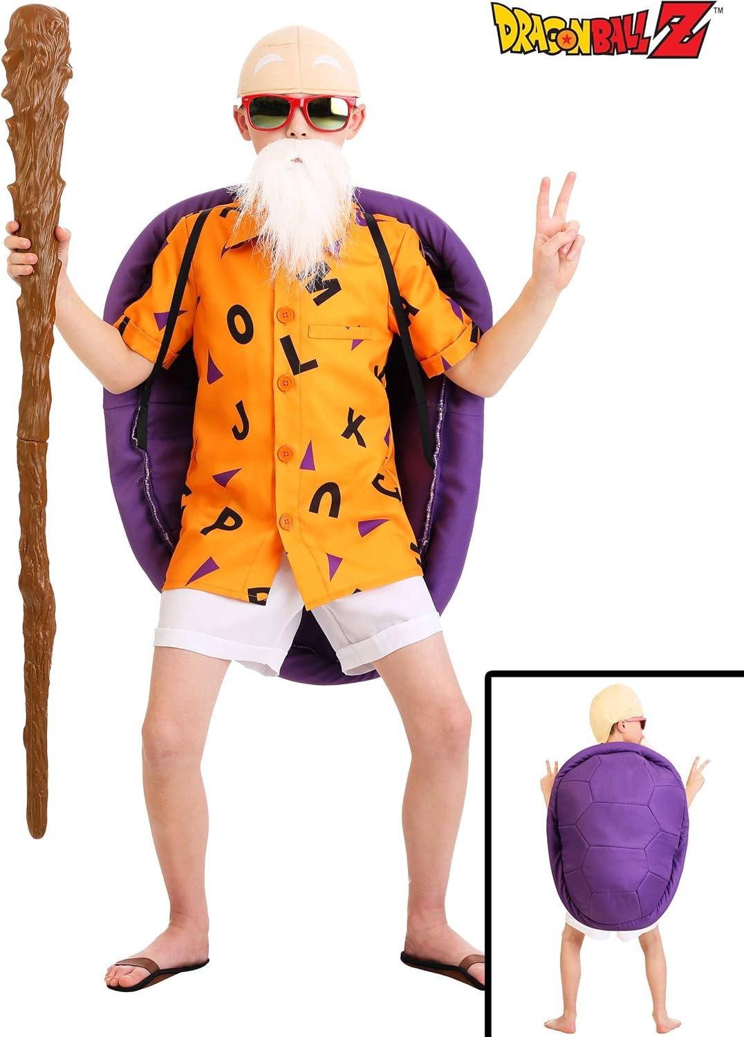 The Fun Costumes Dragon Ball Z Master Roshi Costume for Kids We're dedicated to making your costume experience, exceptional! We've teamed up with Dragon Ball Z, the legendary anime series from Akira Toriyama and this Master Roshi costume will let your child transform into the Turtle Hermit responsible for Goku's first steps into the world of martial arts. Product Design: Let your child transform into the master of the Dragon Ball Z fighters with this exclusive Master Roshi costume for kids. It comes with Roshi's iconic relaxation shirt, a pair of white shorts, a bald cap with bushy eyebrows, Roshi's signature sunglasses, and last but not least, his turtle shell. With this fun costume, your kiddo will feel ready to blast foes with an energy wave or recline at the beach while ordering the other fighters to do so! Product Details: 100% polyester poplin & twill fabrics Shirt has front buttons, false pocket welt, cuffed sleeves Cuffed shorts have elastic back waistband, false fly at front Foam bald cap has appliqued faux fur eyebrows Faux fur mustache/goatee combo Red plastic sunglasses have mirrored lenses 36″ diameter foam turtle shell has elastic shoulder straps Staff shown in photo is sold only in the bundle option Note: Goatee requires double-sided tape or spirit gum to apply to face Size Chart: S: Shirt Chest=27″; Shirt Length=20 1/2″; Shorts Waist=22″; Shorts Length=13″; Child Size=6 M: Shirt Chest=30″; Shirt Length=22 1/2″; Shorts Waist=24″; Shorts Length=14″; Child Size=8-10 L: Shirt Chest=33″; Shirt Length=25 1/2″; Shorts Waist=26″; Shorts Length=14″; Child Size=12-14 XL: Shirt Chest=35″; Shirt Length=27″; Shorts Waist=28″; Shorts Length=15″; Child Size=16 About Us: Fun Costumes are exclusively made by us and begin with passion, teamwork, and industry expertise decades in the making. Our products are proof that with the right people even a simple idea can grow into something incredible. We started in a small garage in Minnesota, providing costumes to our local