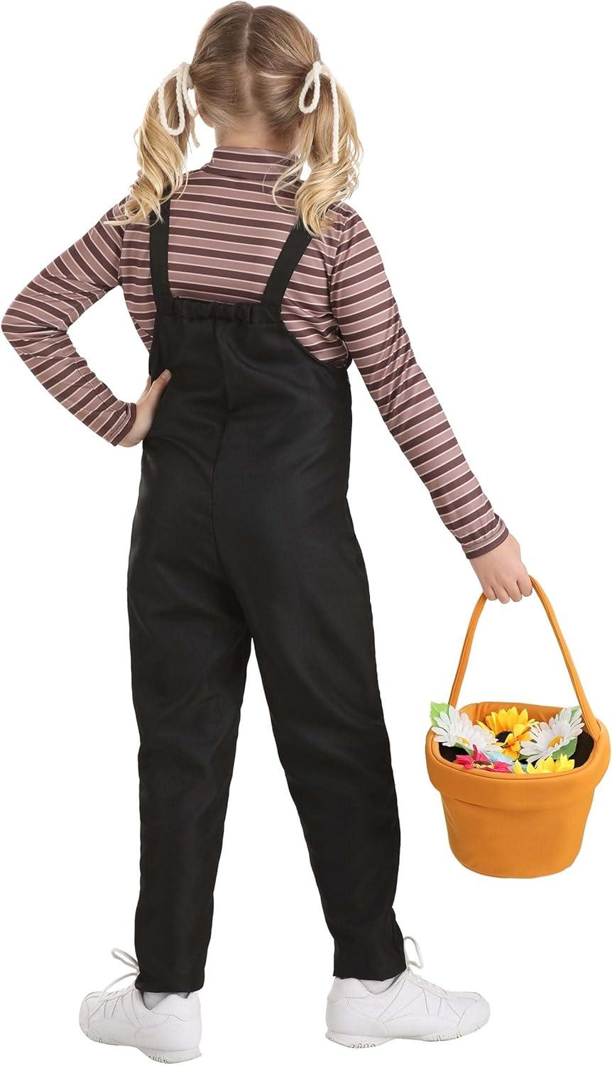 If you've got a little one with caring and quick-thinking gumption, then this Kid's Gertie costume from E.T. the Extra-Terrestrial is perfect! The striped shirt and overalls are an easy fit and the hair ties are perfect for the pig-tail pose. The included flower pot treat bag even means you have any candy gathering plans already set! (Combine this look with a cowgirl hat for a truly complete costume concept.) E.T. the Extra-Terrestrial is a trademark and copyright of Universal Studios. Licensed by Universal Studios Licensing LLC. All Rights Reserved. – Shirt – Overalls – Pair of Hair Ties – Treat Bag