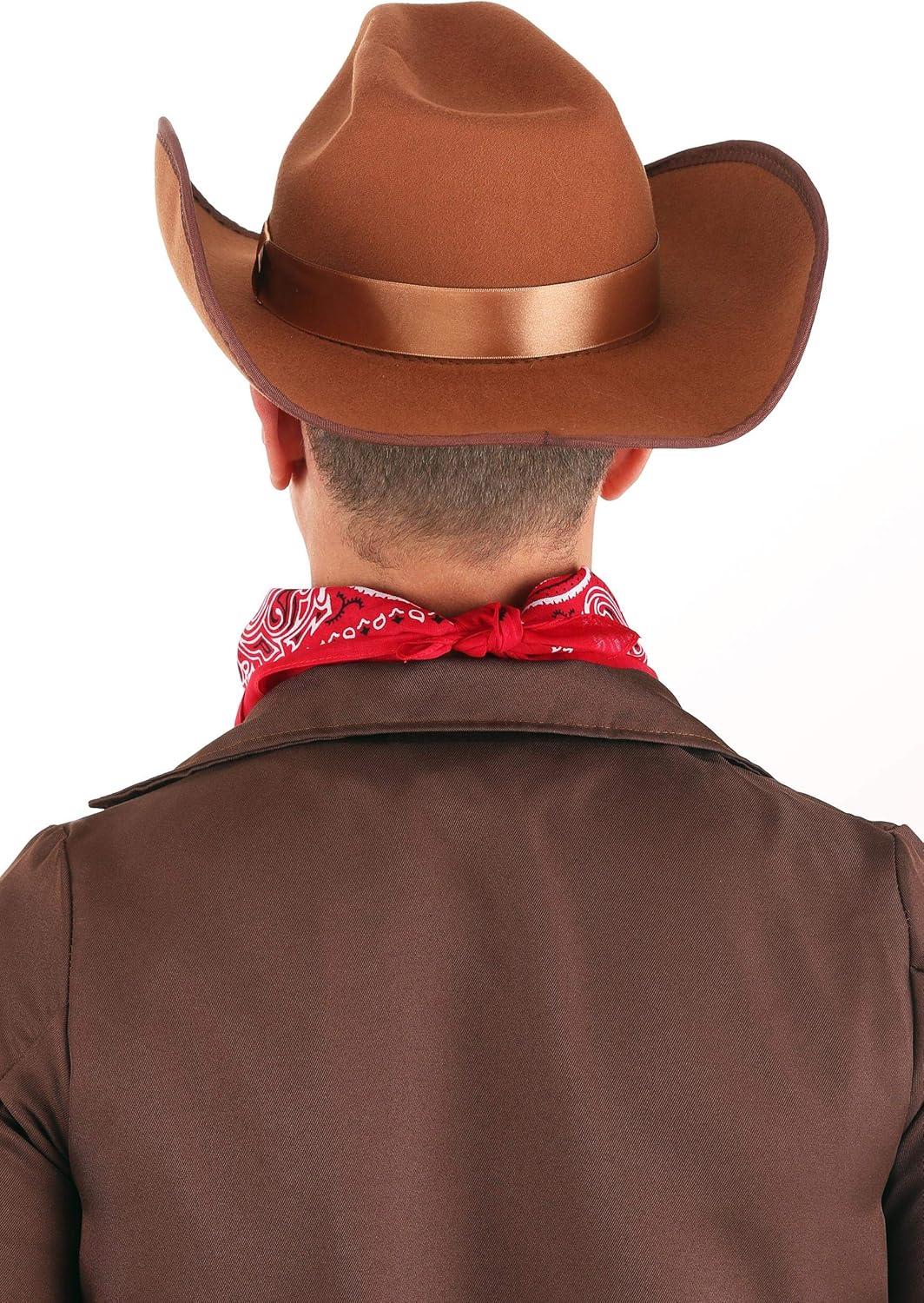 Tip your hat to classic Western charm with this Brown Cowboy Costume Hat. This hat is a nod to the rugged style of the Old West, crafted from 100% polyester for durability and comfort. The molded felt has a realistic look, with ribbon band and brim edging that adds authentic detail to your cowboy ensemble. The brushed faux suede outer surface gives the appearance of weathered leather, perfect for any outlaw, sheriff, or cattle rancher look. This hat is an exclusive item that's been made with care, offering a one-size-fits-most versatility, ensuring every cowpoke can ride off into the sunset with style. Whether you're heading to a costume party or hitting the rodeo, this cowboy hat is the ideal finishing touch for any Wild West costume! Ride into the sunset with this Brown Western Outlaw Cowboy Hat. Made from brushed faux suede with a ribbon band and adjustable fit, this hat is perfect for western-themed events, costume parties, or everyday casual wear. – Hat