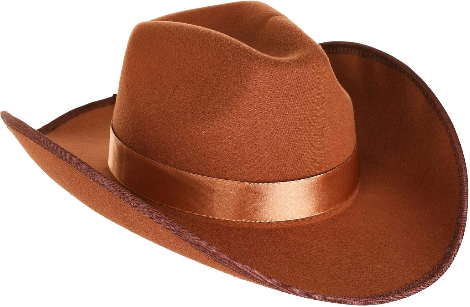 elope Brown Western Outlaw Cowboy Hat – Faux Suede with Ribbon Band, One Size, Brushed Surface Standard(UNISIZE)