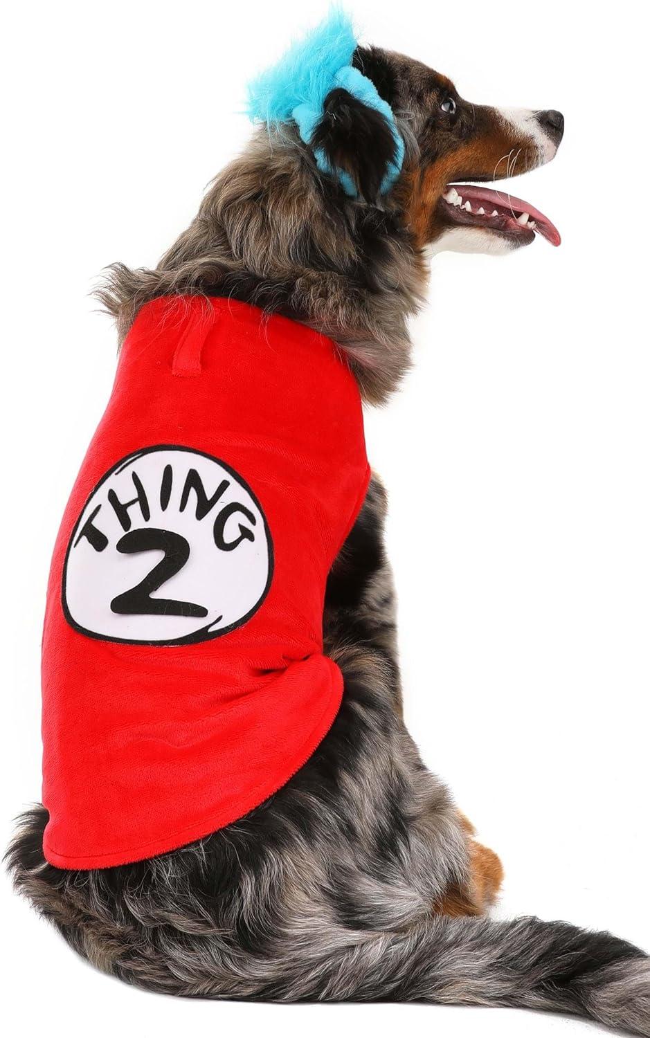 elope Dr. Seuss Thing 1 & 2 Pet Costume – Microfiber Fleece with Faux Hair, Adjustable Straps, Officially Licensed – S(S)