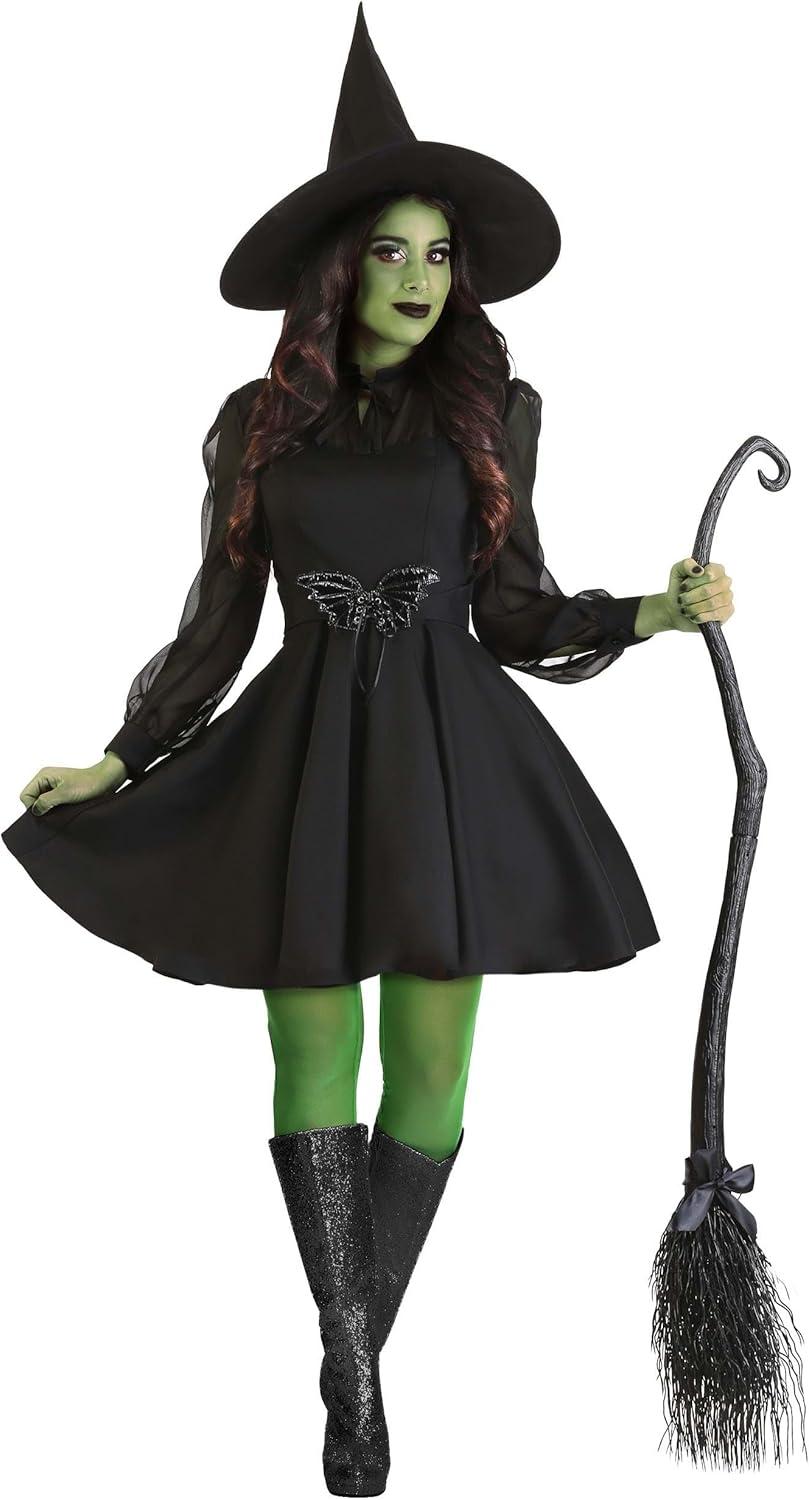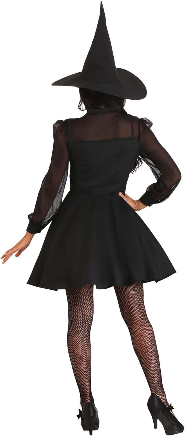 Enchanting Women’s Spellbinding Sweetie Witch Costume – Elegant Witch Dress with Bat-Wing Buckle, Chiffon Sleeves, Unique Hat