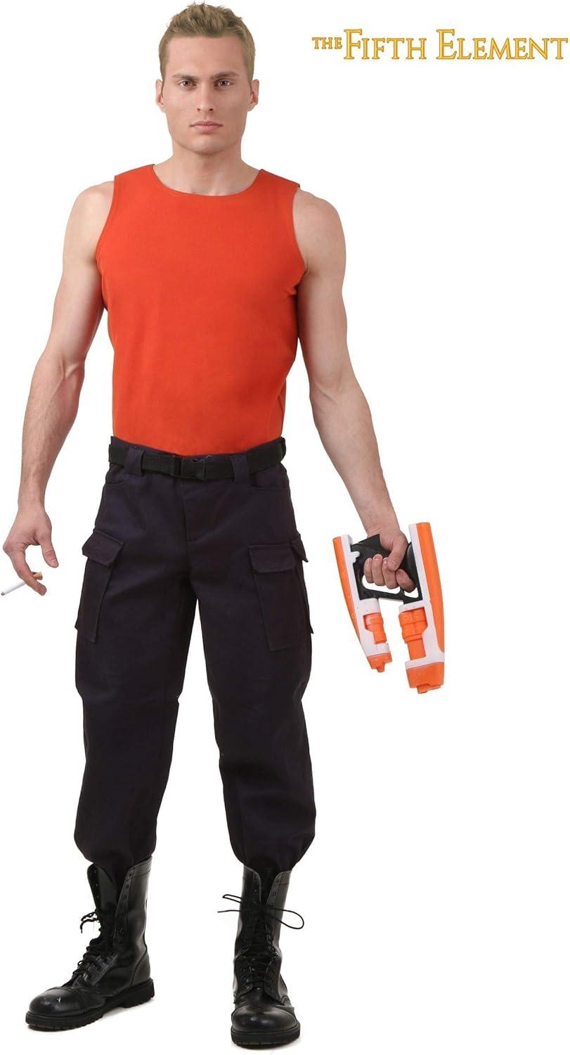 Step into the world of the Fifth Element with this meticulously crafted elemental costume. These elemental costumes are perfect replicas of the one worn by the character in the movie, sure to make you the star of any costume party or fan convention. Experience comfort and durability with the materials used in this Fifth Element costume. These Fifth Element costumes are designed for easy wear and removal, with the orange pullover stretch knit tank top and black twill pants adding functionality to the outfit. This Korben Dallas costume not only adds to the authenticity of the costume but also serves as a great conversation starter. Embrace adventure with this Fifth Element cosplay that is more than just a piece of clothing. This Fifth Element merchandise, just like Korben Dallas, prepares you for anything, from an epic gun fight in the opera house to meeting Ruby Rhod. Connect with your favorite movie, express your fandom, and have a great time with these character day outfits for adults. This elemental costume is more than just a costume, it's a must-have for both long-time fans of the Fifth Element and those just discovering it.
