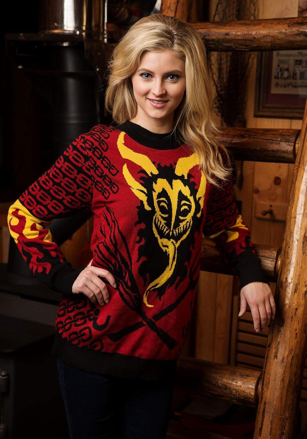 FUN.COM Adult Holiday Krampus Ugly Christmas Sweater, Horror Xmas Holiday Knitted Crewneck Sweaters for Men & Women M Multicolor(Small)