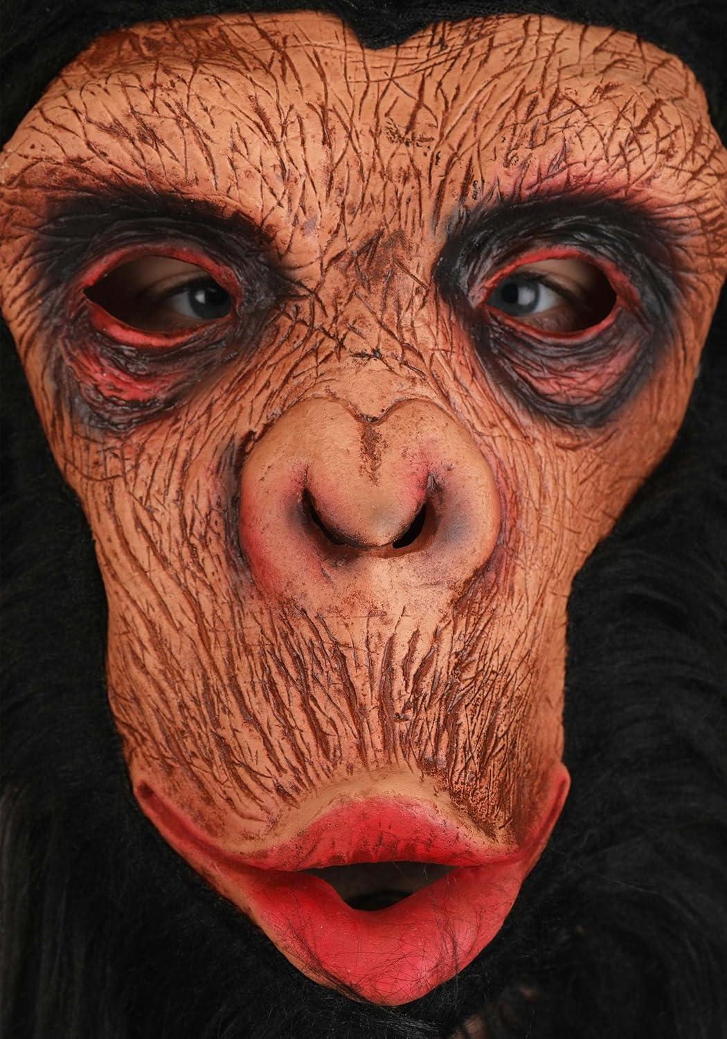 Fun Costumes Adult Realistic Chimpanzee Costume Mask, Monkey Ape Chimp Mask Full Head Animal Halloween Masks, Standard(Standard)