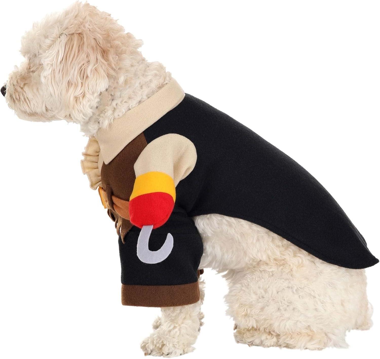 EASY WEAR: Ease of dressing and undressing is guaranteed with this dog pirate costume, as the dog's front paws slip through leg openings. The elastic at the bottom of the chest opening ensures a snug fit, making this pirate costume for dogs a breeze to put on and take off.