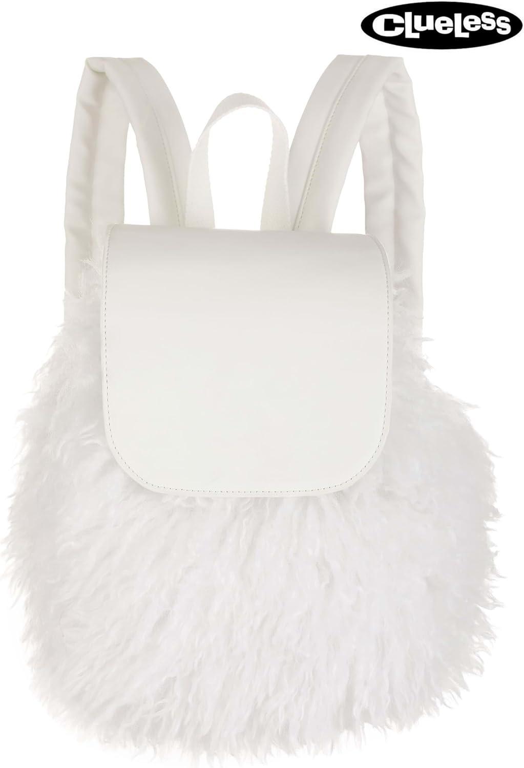 Fun Costumes Clueless Cher White Fuzzy Backpack for Adults – Official Clueless Costume Accessory Furry Fashion Accessory Bag