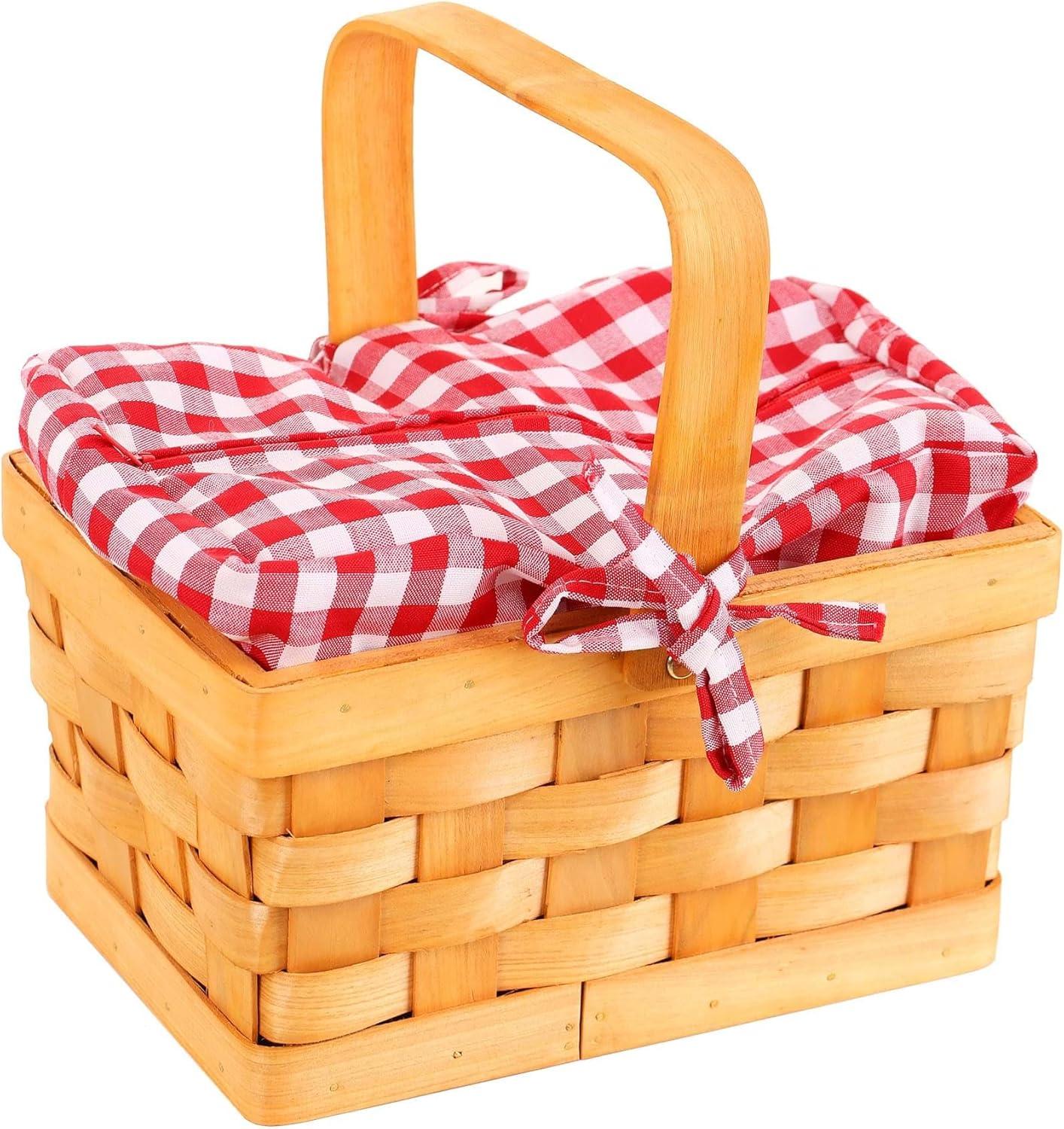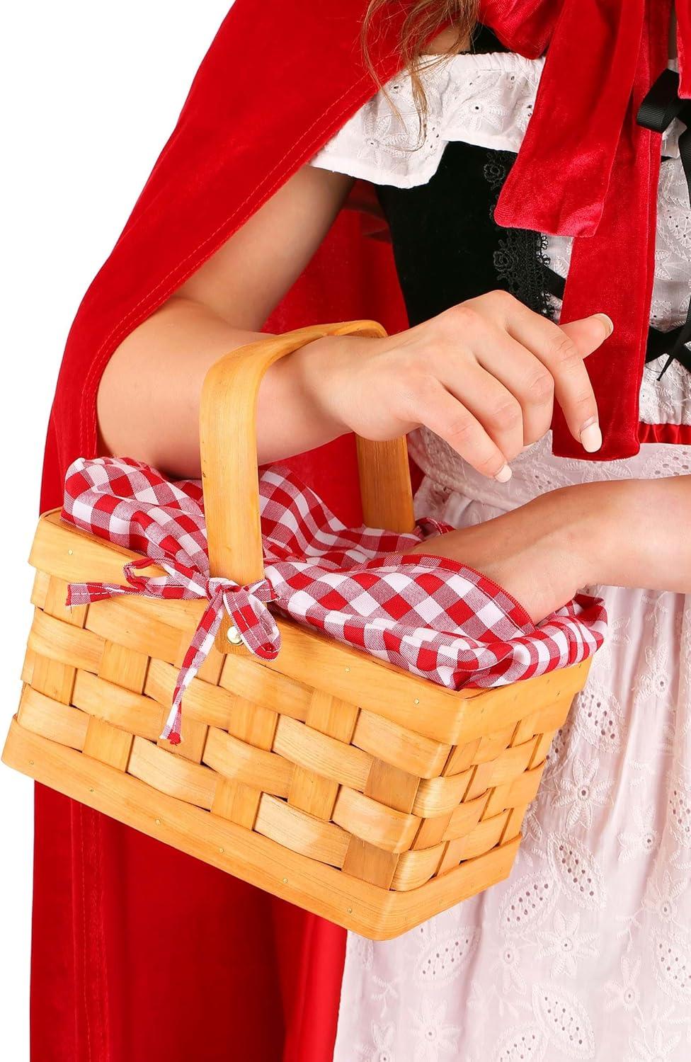 Whimsical Design: Embrace the enchanting world of fairy tales with this vintage-inspired gingham hand basket accessory, perfect for completing your Little Red Riding Hood or Dorothy Gale cosplay ensemble. The woven wood strip basket features a removable fabric lining with ties on both sides and a zipper opening at the top for added functionality and charm.
