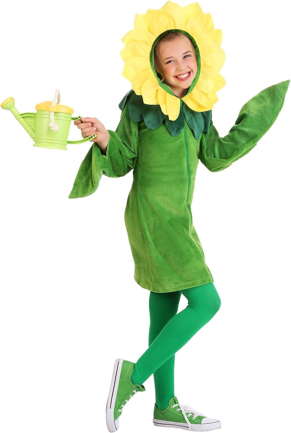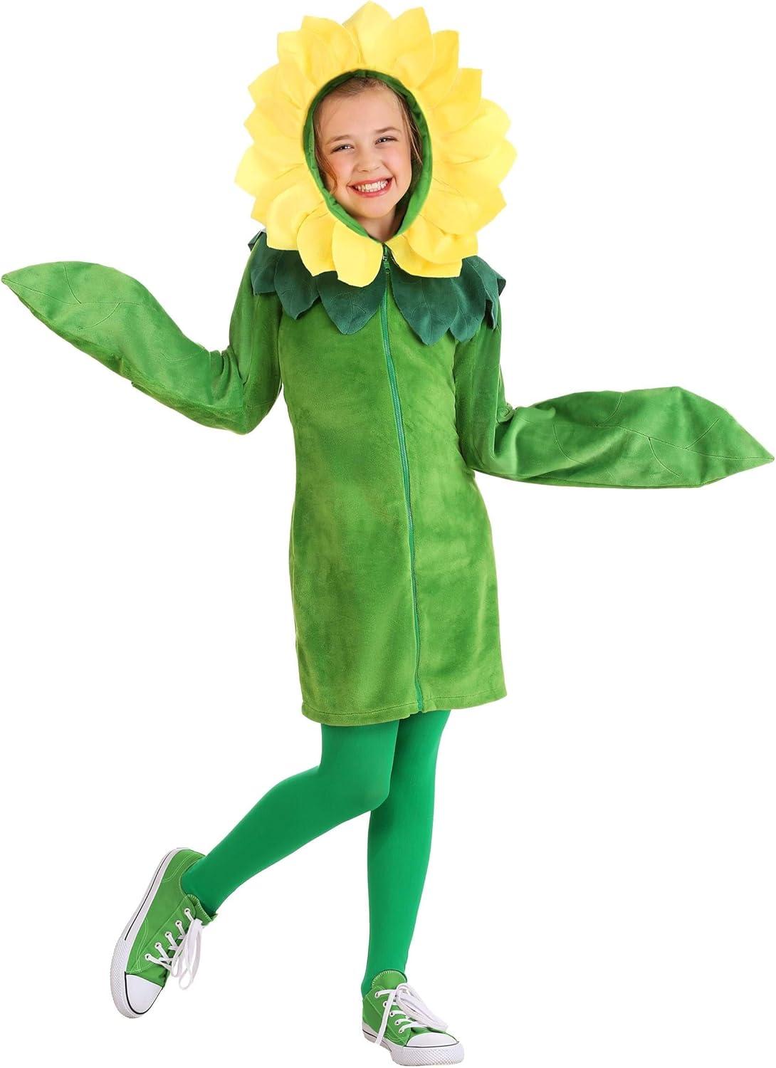 Fun Costumes Flower Hoodie Dress Outfit for Girls: Calling all little sunshine-seeking flower girls! Our Flower Costume Hoodie Dress is a fun way to bring the playfulness of the garden to Halloween. Perfect for holidays and dress-up photo shoots, this sunny yellow dress features beautiful fabric petals and leaves that are sure to make your little one feel like an enchanting creature of the summer breeze. The costume's zippered front ensures easy and quick dressing, while openings in the leaf shaped sleeves let her explore her surroundings with her hands outstretched. The attached hood sports a lovely array of yellow fabric petals over a tulle backing. The dress easily layers over green leggings and a tank top to make this costume comfortable for all seasons. If you're looking for something different to add a touch of sweetness to your daughter's wardrobe, look no further—this Flower Costume Hoodie Dress will have your little one ready to bloom! Product Details: 100% polyester Zipper down center front Sewn details on the sleeves to look like veins Small openings in the leaf shaped sleeves to allow you to use your hands Attached fabric leaves around the collar Attached hood has fabric petals with tulle backing Size Chart: XS: Chest=23 1/2″; Sleeve Length=23 1/2″; Dress Length=24 1/2″; Child Size=5-6 S: Chest=25 1/2″; Sleeve Length=25″; Dress Length=26 1/2″; Child Size=6X-8 M: Chest=29″; Sleeve Length=27″; Dress Length=29 1/2″; Child Size=10-12 L: Chest=32 1/2″; Sleeve Length=29″; Dress Length=31 1/2″; Child Size=14 XL: Chest=35″; Sleeve Length=30″; Dress Length=33 1/2″; Child Size=16 About Us: Fun Costumes are exclusively made by us and begin with passion, teamwork, and industry expertise decades in the making. Our products are proof that with the right people even a simple idea can grow into something incredible. We started in a small garage in Minnesota, providing costumes to our local community, and now we're creating costumes for people all around the world. – Ho